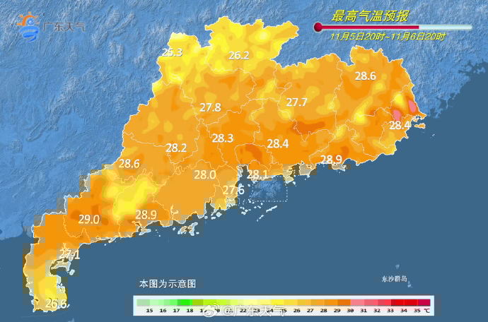 预计,5-6日,我省降水减弱,云量逐渐减少,气温回升;7日,珠三角南部和粤西大部市县阴天有小雨,其余市县多云为主。另外,未来3天,我省海面有东北风6~7级阵风8~9级。