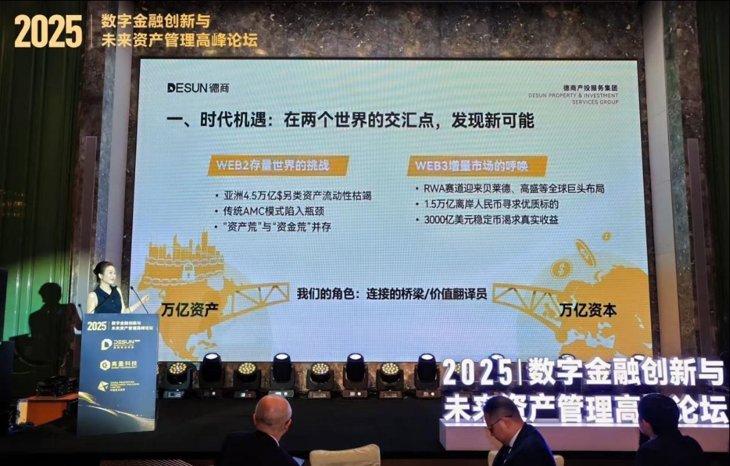 l 资产打通:德商奇点科技COO Lily Duan女士在以《从城市核心资产运营商到加密世界的黑石》为题的演讲中,系统阐述了传统资产与加密世界融合的价值逻辑与实践路径。她剖析了市场面临的“资产端缺乏现金流、资金端难寻稳收益、流通端缺乏高效通路”的三重困境,并提出以“识别-优化-数字化”的核心能力闭环作为破局关键。为破解优质实体资产的流动性困境,她进一步阐述了公司的双轨实践路径:在合规层面,通过获取香港金融牌照确保产品规范发行;在技术层面,则积极布局链上DeFi协议以提升资产流动性。她以成都西部金融中心项目为例,强调所有RWA产品的底层应均为“已在线下优化好、能产生真实收益”的资产,坚决杜绝无价值支撑的空气产品,致力于构建连接实体资产与全球资本的透明高效价值生态。