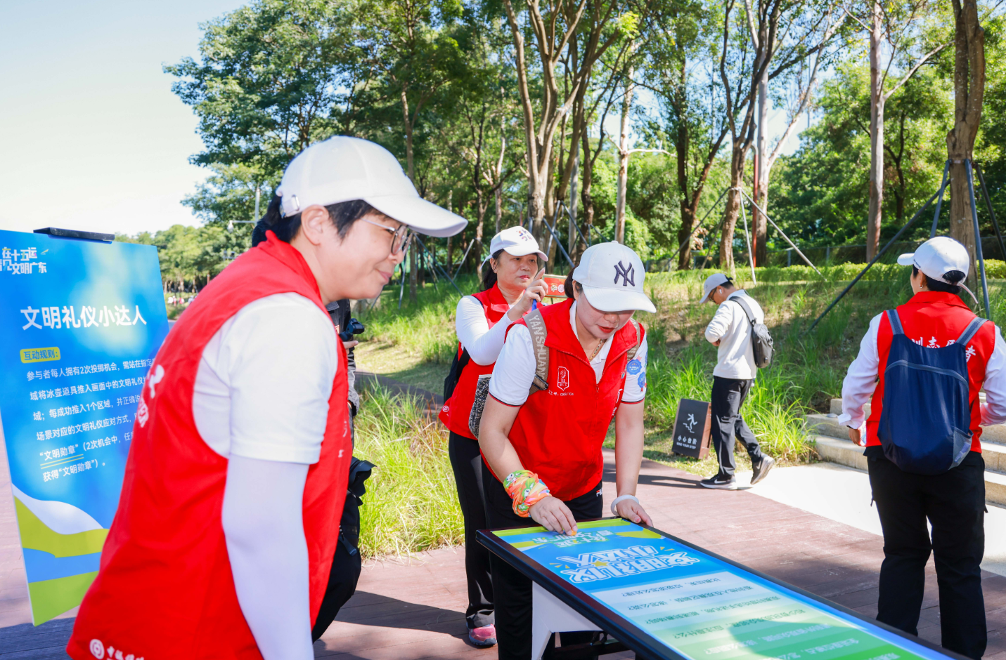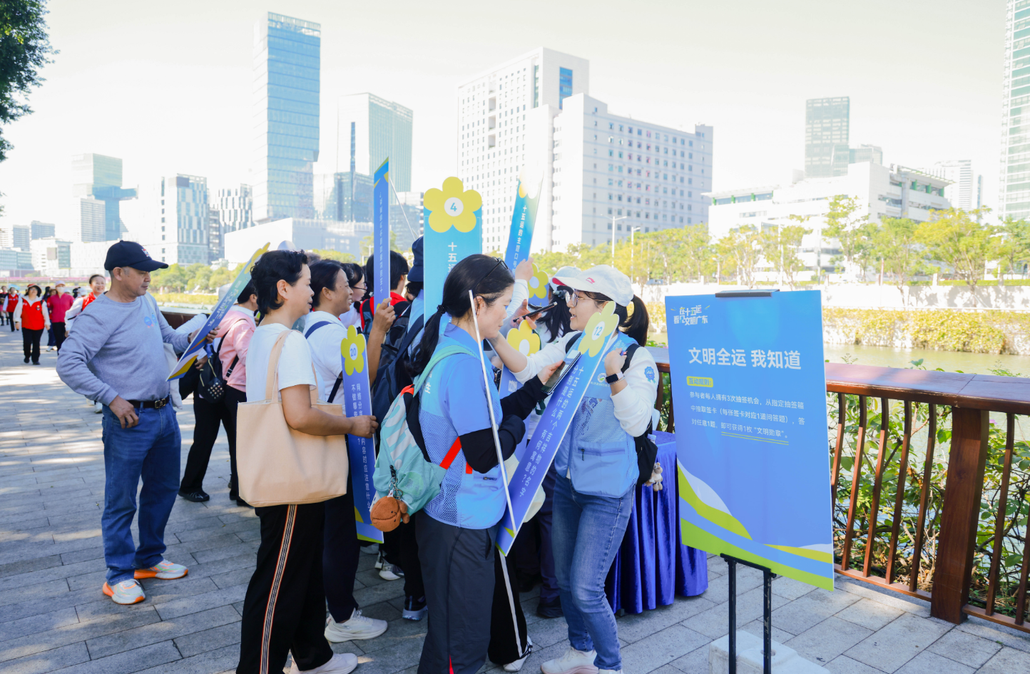 由文明实践志愿者、公益救援队志愿者、环保志愿者、外卖骑手、学生代表分别组建“文明宣传队”“服务暖心队”“环境提质队”“交通提升队”“观赛实践队”5支队伍,带领市民群众迎着初冬的晨光,踏着清爽威风,从南山区大沙河生态长廊“滨河空间”出发,向着5公里外的大沙河公园前行。循着十五运的热烈节拍与文明实践的生动足迹,流动队伍穿梭其间,成为大沙河畔一道兼具活力与温度的文明风景线。