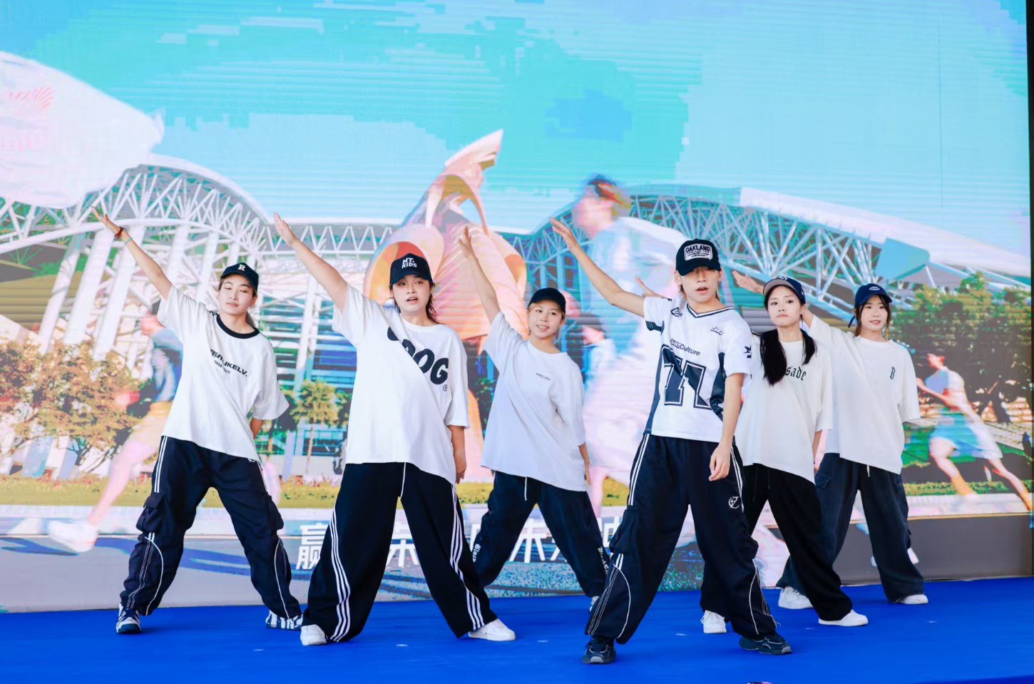 活动开始后,深圳职业技术大学,踏着十五运会歌《气势如虹》的旋律,用灵动舞姿展现青春活力与全运热情,瞬间点燃现场氛围。