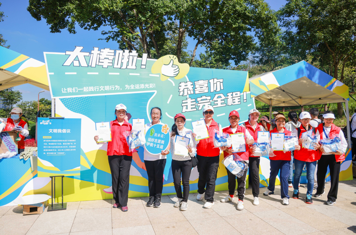 沿途,主办方设置了5个文明互动打卡点,让参与者在行走中体验、在互动中学习,最后集齐5枚“文明勋章”,还能兑换一份“全运心意”,让“行走”成为文明实践的生动课堂。