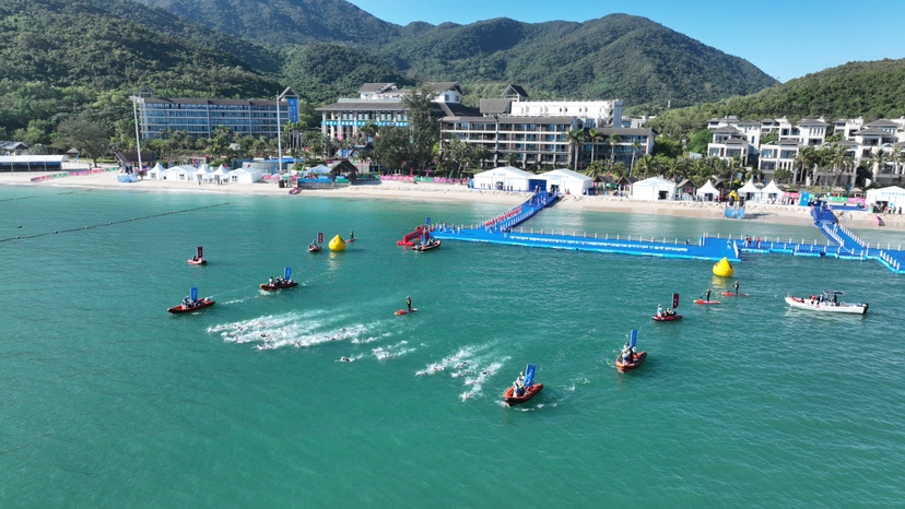值得一提的是,本次比赛的桔钓沙赛场,被誉为“全运会最美赛场”之一。这里沙质细腻如银,三面环山,一面临海,是绝佳的比赛舞台。