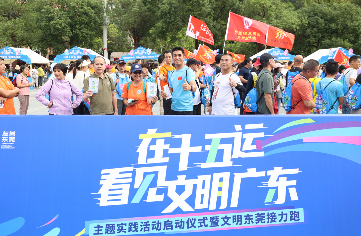 11月5日,黄旗山公园正门广场人头攒动、暖意融融,“在十五运看见文明广东”主题实践活动启动仪式暨“文明东莞接力跑”活动在这里举行。作为东莞承接第十五届全国运动会部分赛事的重要文明预热活动,本次活动以“文明+运动”的创新形式,吸引了150余名市民群众、跑步爱好者参与,在沉浸式体验中传递文明风尚。