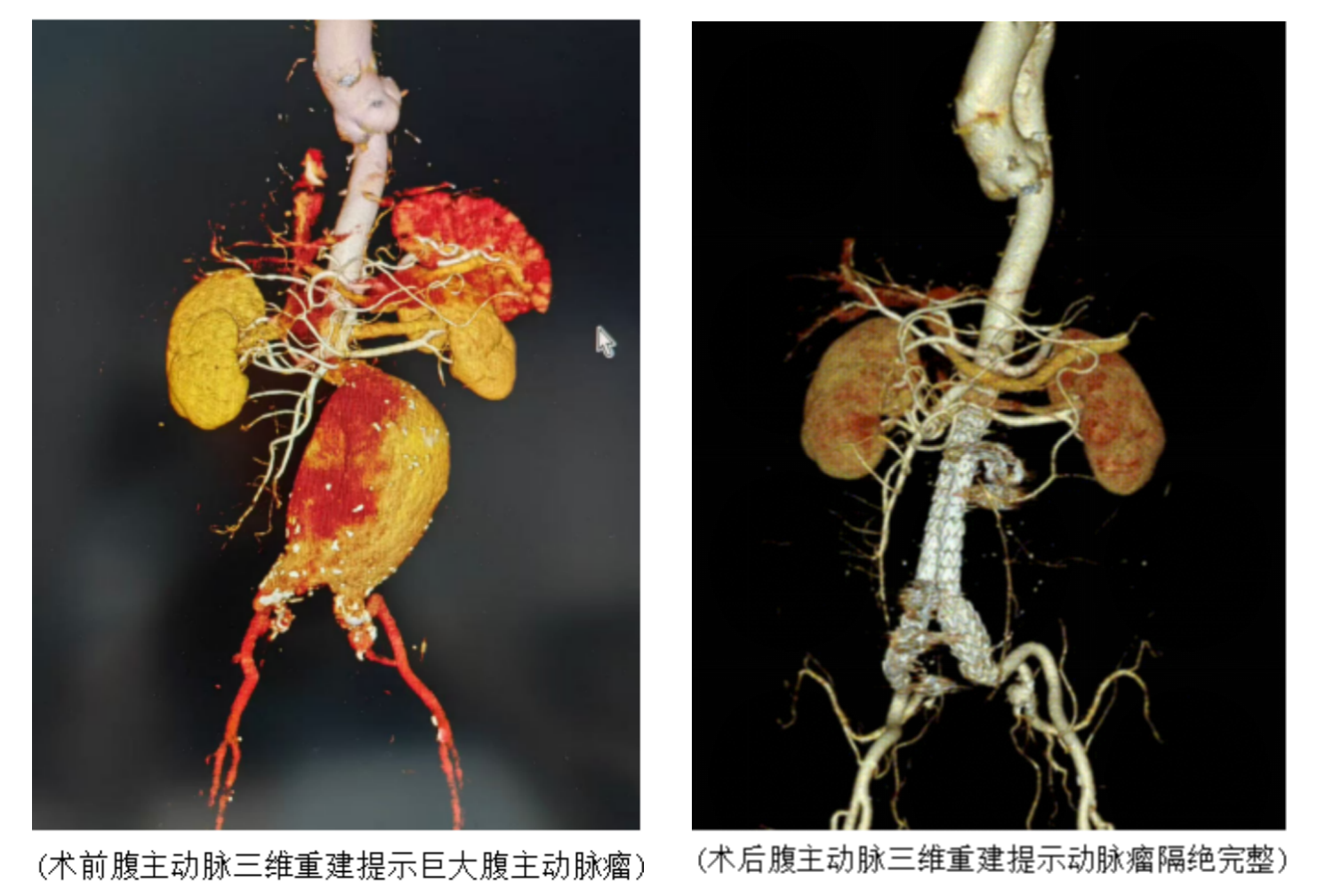 面对基础病多、开放手术耐受性极差的患者,团队当机立断:启用杂交手术室,行腔内修复术(EVAR)!杂交手术室兼具开放手术与介入治疗功能,能根据病情灵活调整方案,是现代血管外科应对复杂病例的“利器”。在麻醉团队主任医师李嵩山的保驾护航下,患者通过加压输血、生命体征调控,勉强维持住手术机会。
