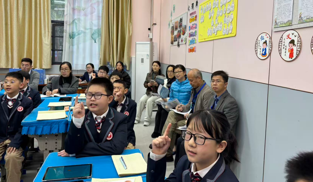 深圳市碧波小学副校长谢淑红赞赏上课的老师“基于学的视角设计,关注学生的学习经历体验”。深圳市莲南小学副校长林泽峰评价英语课注重情境创设,“在活动设计与知识迁移上有亮点”。深圳市洪湖小学副校长虞汉舜肯定了教师运用文生图、文生视频、人机对话等技术手段,“构建了真实自然的会话情境,体现了教学评一体化”。