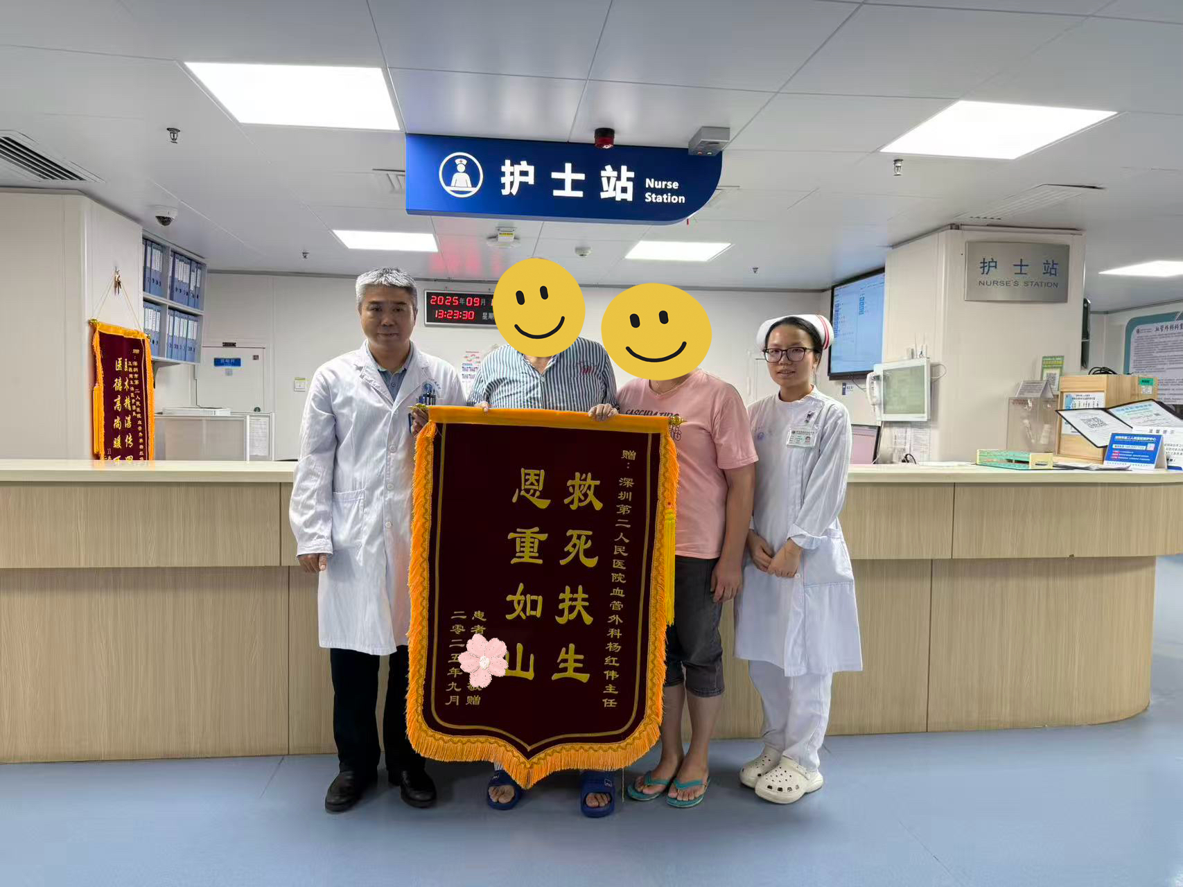 在拔除气管插管后,患者握住医生的手,说了声:“谢谢大夫。”经过8天的严密监护,患者生命指标恢复正常,顺利转回血管外科普通病房,并于不久后康复出院。出院时,他将一面写有“救死扶伤,恩重如山”的锦旗送至血管外科,以此表达对全体参与救治医护人员的无尽感激。