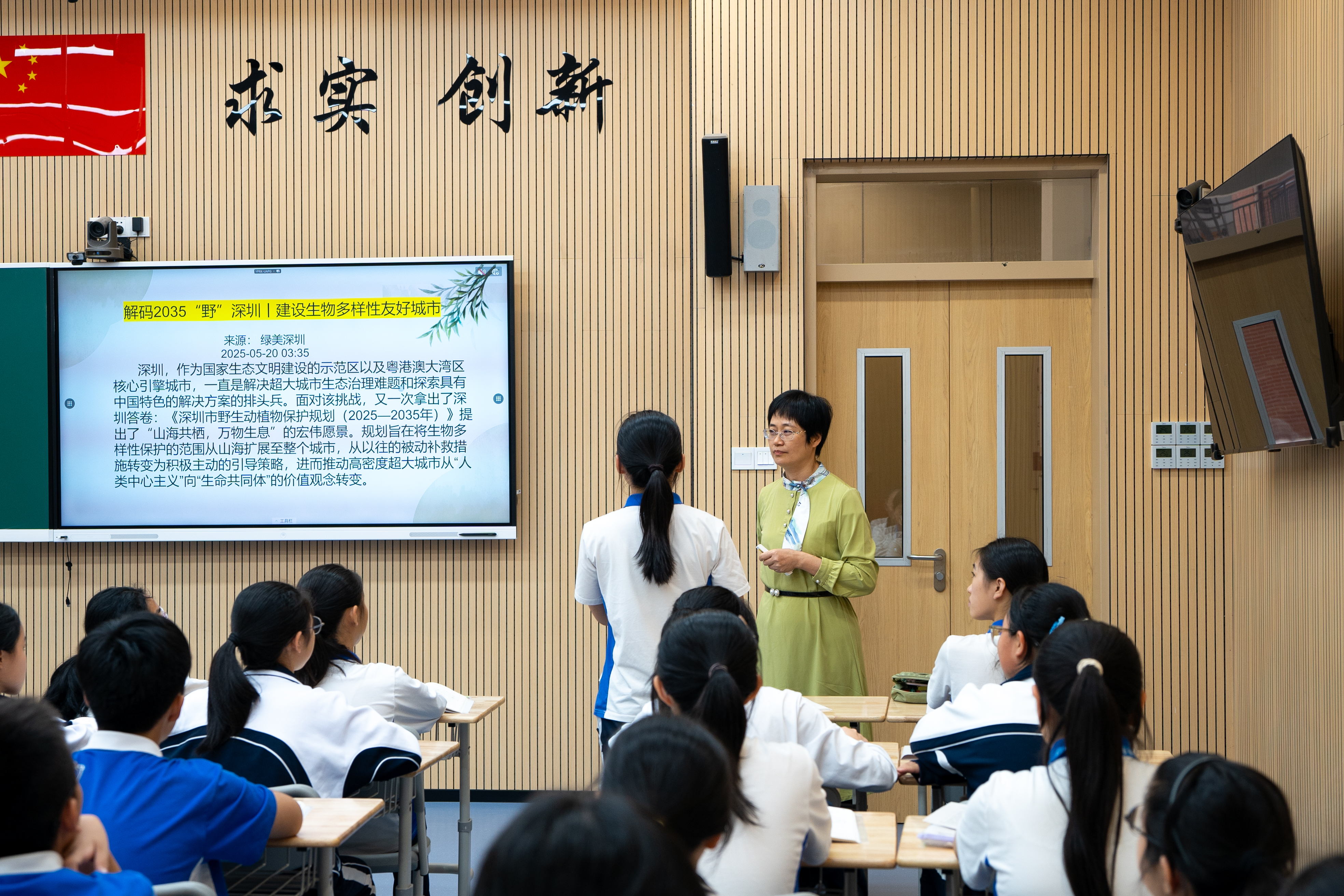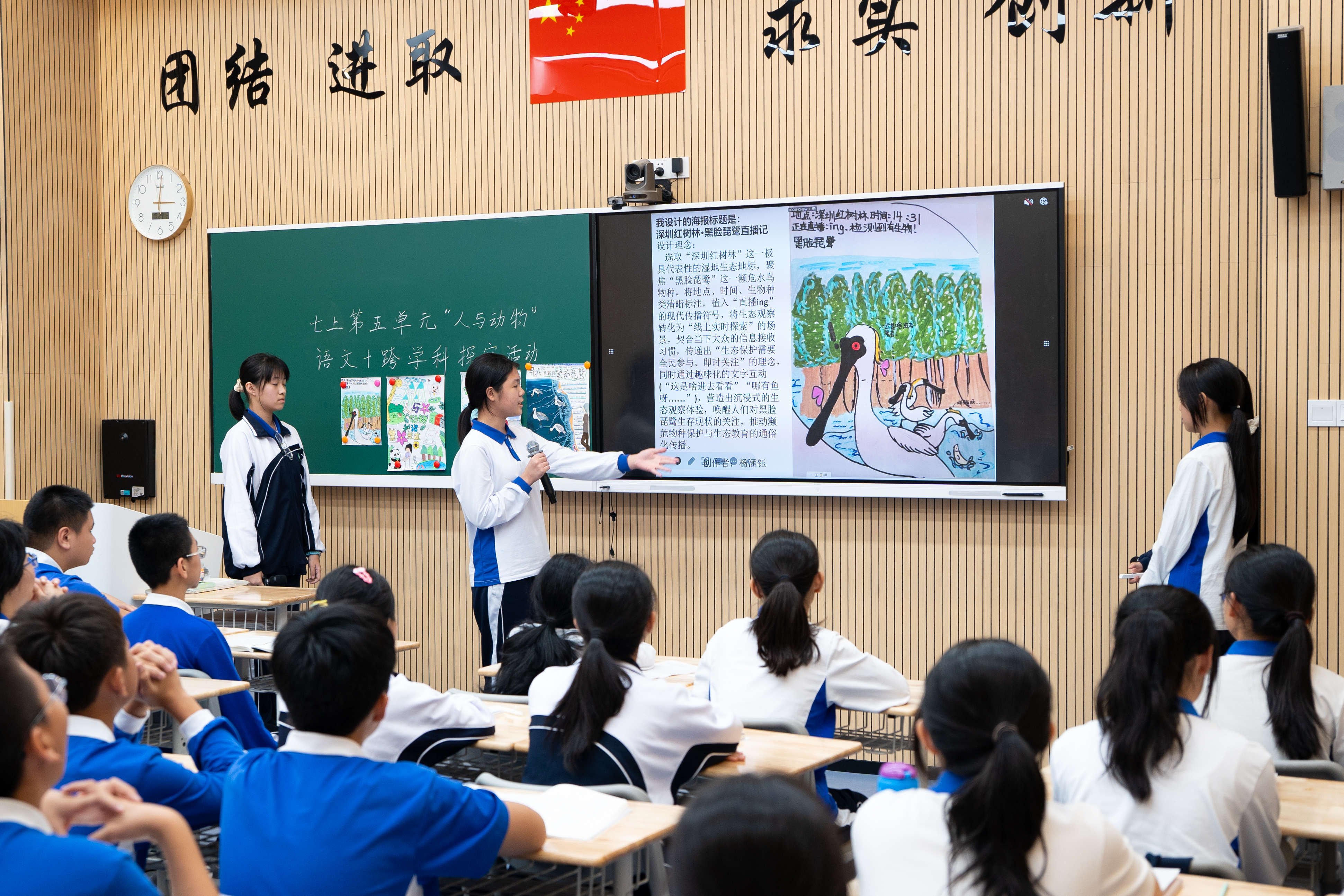 这份青春担当与城市回应的双向奔赴缘起深圳中学老师杨碧蓝执教的两节以“人与动物”为主题的跨学科教学展示汇报课。区别于传统课堂的知识灌输,这门课程虽以《猫》《大雁归来》等文本为起点,但没有止步于文学赏析,而是引导学生思考人与动物的文学关联后,将视野投向了深圳的城市肌理。通过提出“动物给城市生活的人类带来了什么?”“深圳市民对保护动物有着怎样的认识和态度?”等源于文本却扎根现实的问题,让学生从课堂学习者变成城市的观察者与思考者。