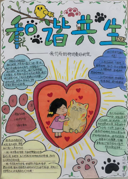在跨学科协作中,学生的探究不断走向深入:其中语文+生物小组针对“噪鹃扰民”这一现象,展开了重点攻坚——他们系统研究噪鹃的繁殖习性、鸣叫规律等生物特性,结合声学原理与城市生态环境特点,反复论证后提出了包括优化栖息地布局、设置声屏障等在内的科学降噪方案,为缓解同类生态扰民问题提供了切实可行的思路;其他小组也各有突破:语文+道法小组通过问卷调查和实地走访,梳理城市动物保护痛点并探讨人道保护机制;语文+美术小组以画笔将文字转化为视觉图景;语文+音乐小组则以小狗为主视角创作歌曲《城市里小狗的一天》,用音乐节奏和语调声线讲述小狗的情绪起伏,活泼有趣……这些多元探索最终凝聚成一份详实的《致城市管理者的一封信》。