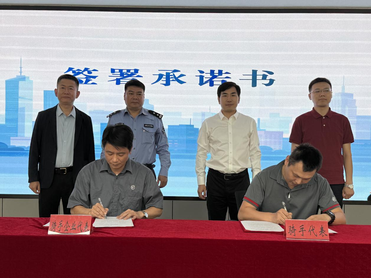 随后,骑手代表向企业郑重签署承诺书,企业代表也向街道递交承诺书,形成“骑手—企业—街道”三级安全责任闭环。