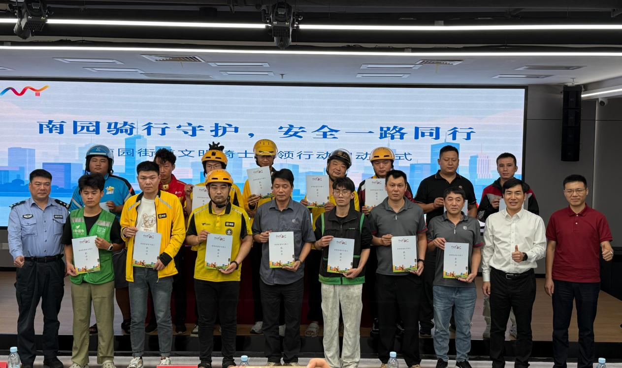 11月5日,福田区南园街道举办“南园骑行守护,安全一路同行”文明骑士引领行动,向辖区全体骑手及外卖、快递企业发出安全骑行倡议,号召大家以 “安全为基、文明为要”,规范佩戴安全头盔、不闯红灯,严格遵守交通规则,共同争做有责任、有温度的“文明骑士”。