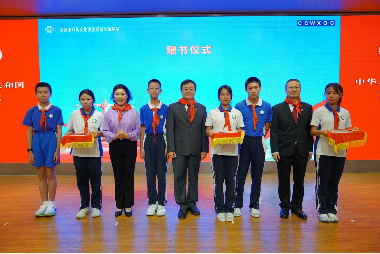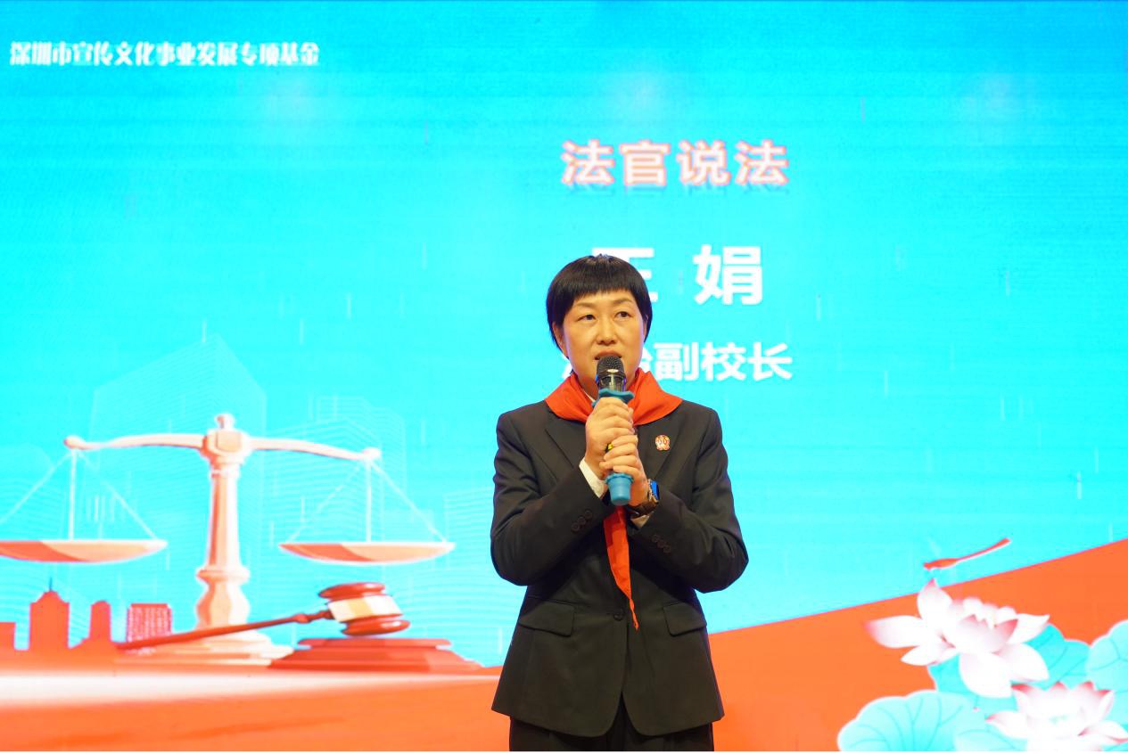 活动中,宝安区法院副院长颜浩民与深圳市法官文联副主席、彩虹老法官文艺宣传队队长侯继宽共同向学校赠送了一批法治读物,丰富了学校的法治教育资源,助力营造浓厚的校园法治文化氛围。