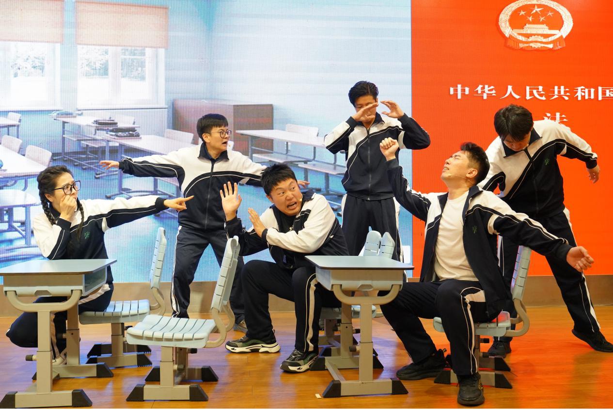 ▲学生们在表演情景剧《不让青春留伤疤》。