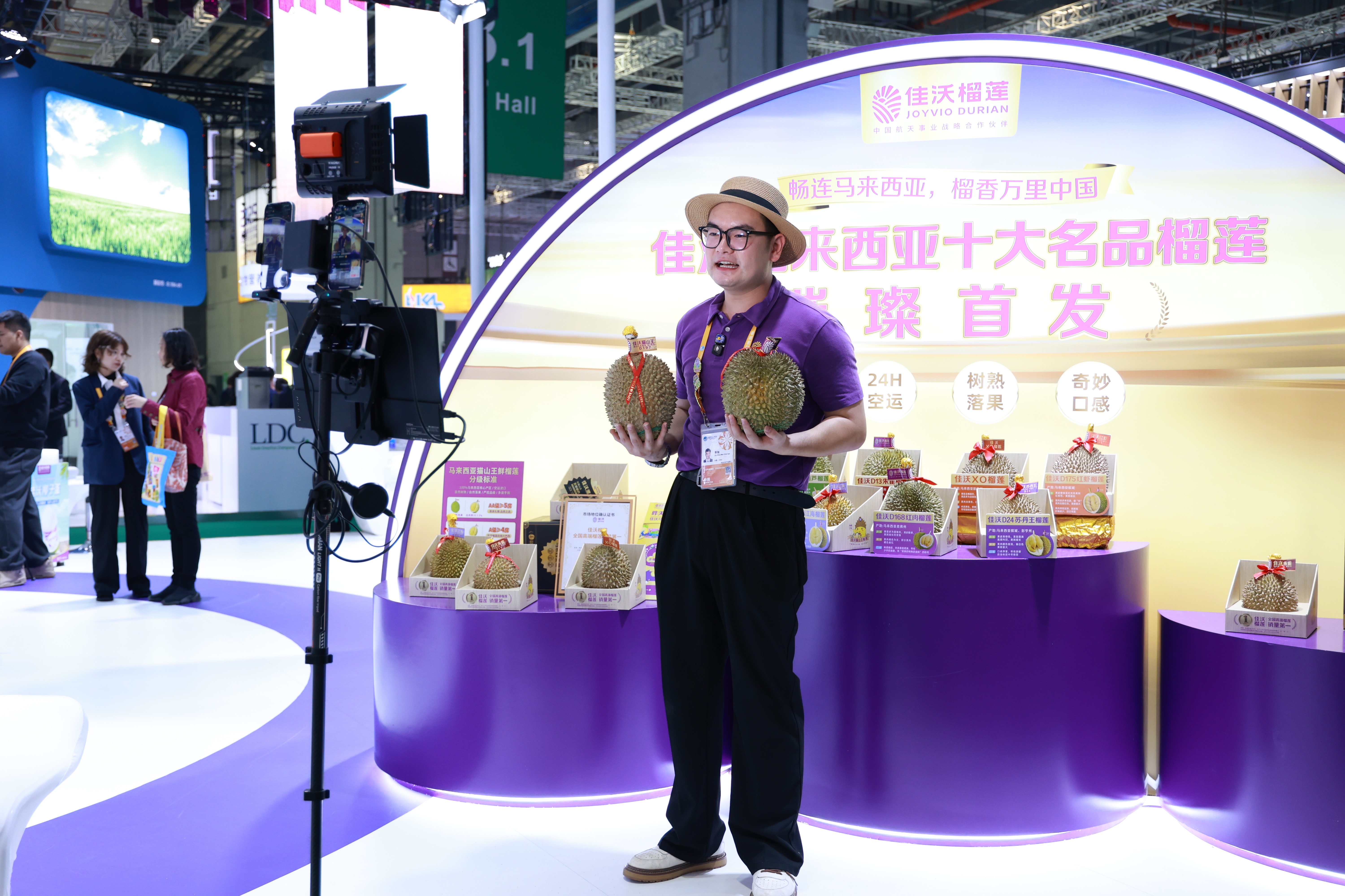 “在往届进博会上,佳沃马来西亚猫山王榴莲、佳沃秘鲁沙漠蓝莓、佳沃雪山车厘子等新品借助进博效应迅速‘出圈’。”鑫荣懋相关负责人表示,在第七届进博会上,鑫荣懋面向全球首发的佳沃马来西亚猫山王鲜榴莲,获得了中国市场的热烈反响。今年,鑫荣懋继续引入马来西亚十大珍稀品种鲜榴莲,让中国消费者一次享受十款佳沃“顶榴”美味。