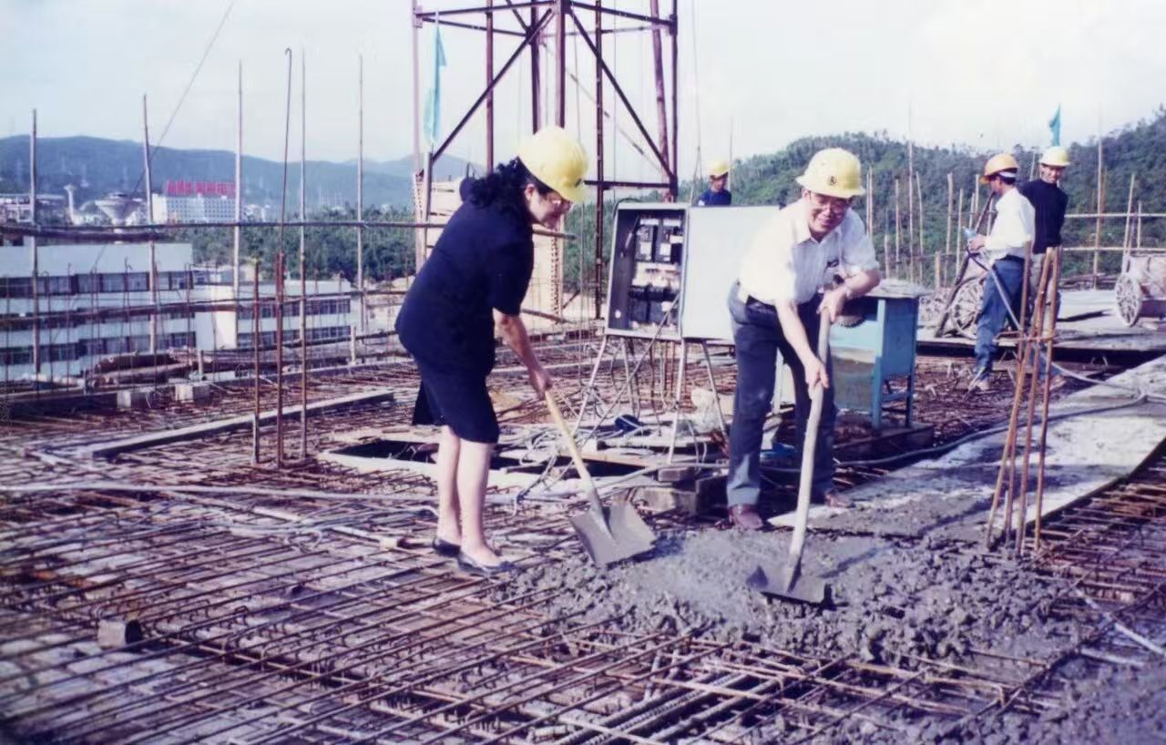 1994年,教学办公综合楼和师生宿舍楼尚未建成,但招生工作刻不容缓。为了尽快让学生入学,我们克服了重重困难,在校园西边搭起了1100平方米的临时铁皮屋作为校舍。这半年时间里,我们争分夺秒、日夜奋战。从校舍的设计规划到材料采购,从施工建设到内部装修,每一个环节我们都亲力亲为,严格把关。