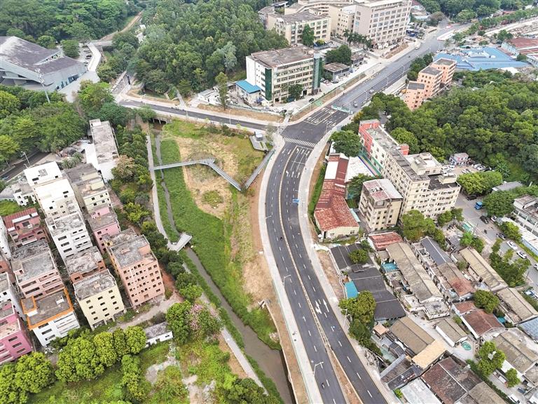据介绍,观澜三号路为市政投资重点项目,南起观澜街道高尔夫大道,北接环观南路,全长约2.3公里,红线宽30米至40米,按城市次干道标准建设,设计为双向四车道,分两个标段推进。其中,二标段建设因征地拆迁、成本波动、跨项目协调、施工条件变化等多重因素叠加,出现诸多困难。经区相关部门、观澜街道与各参建单位协同攻坚,治痛点、疏堵点、解难点,火力全开加快建设步伐,目前已经全面完成施工,实现全线贯通。