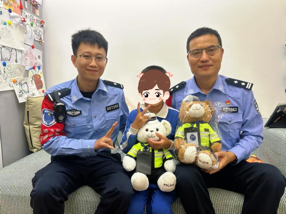 11月4日晚,光明大队玉塘中队中队长慕三英带领警员专程上门回访,为小朋友送上定制交警玩具小熊与文具,更围坐在一起倾听家长对校园交通安全宣传、小区周边交通治理的意见建议,让一次暖心互动延伸为扎根基层的民生访谈。