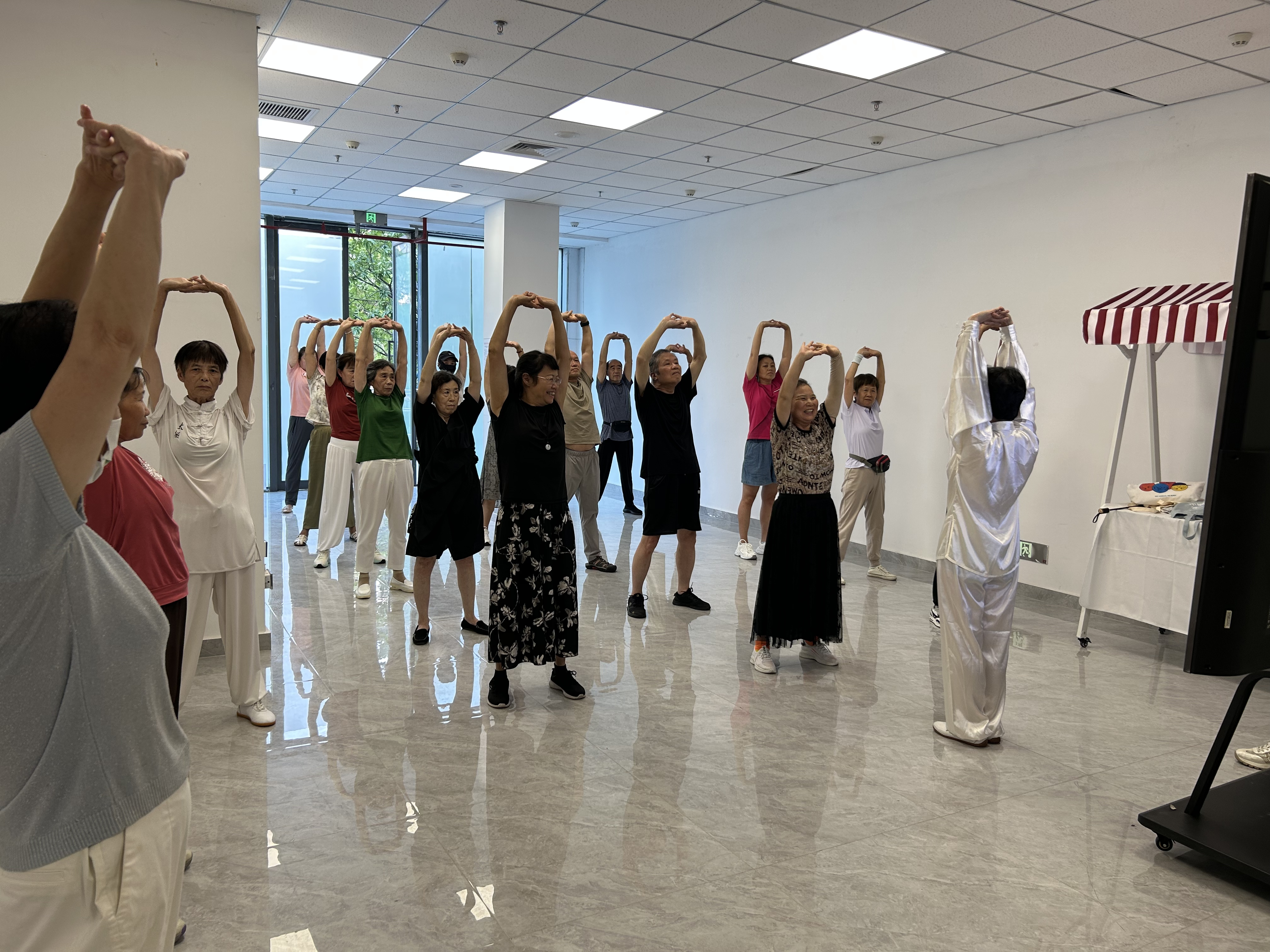 活动当天,在志愿者的耐心讲解和一招一式的示范带领下,居民全神贯注地学习。现场气氛宁静而专注,大家在一呼一吸、一伸一展之间,初步体验了传统养生功法的独特魅力,感受着身心的放松与调和。