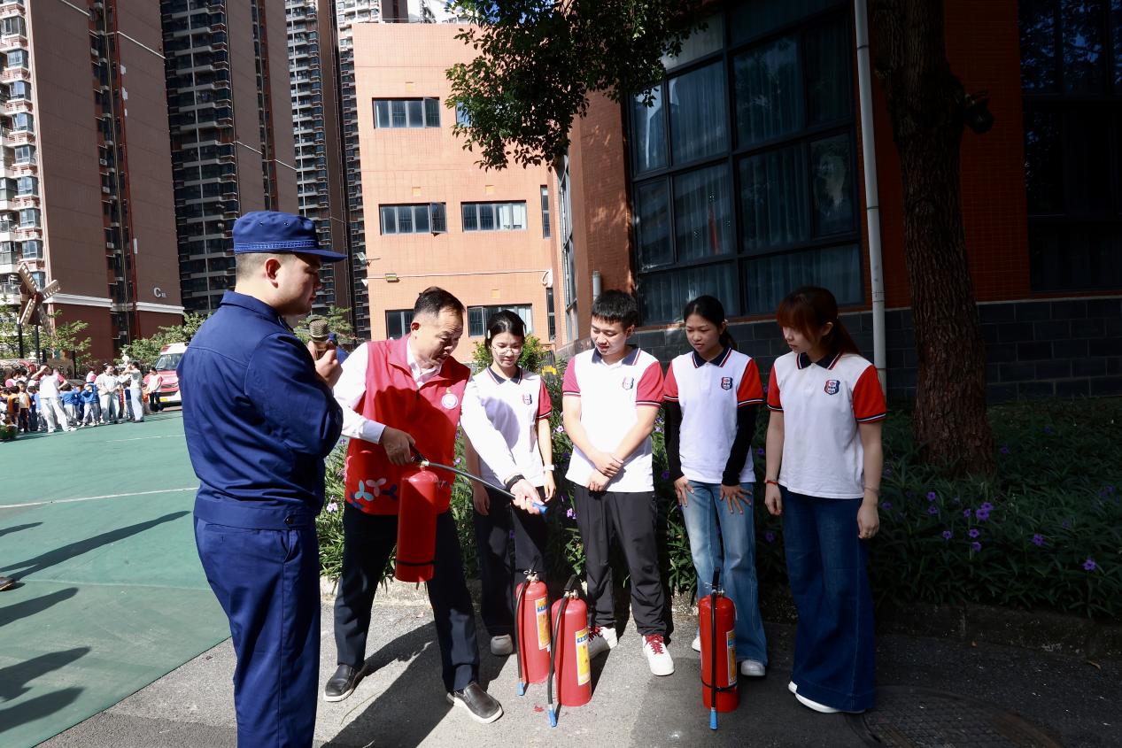 除了面向幼儿的趣味讲解,活动还设置了实操培训环节。消防员现场演示了灭火器的正确使用方法,并指导幼儿园教师和后勤人员逐一进行实操演练。“一提、二拔、三握、四压”,大家在消防员的专业指导下,迅速掌握了操作要领,增强了应对初期火灾的实战能力。