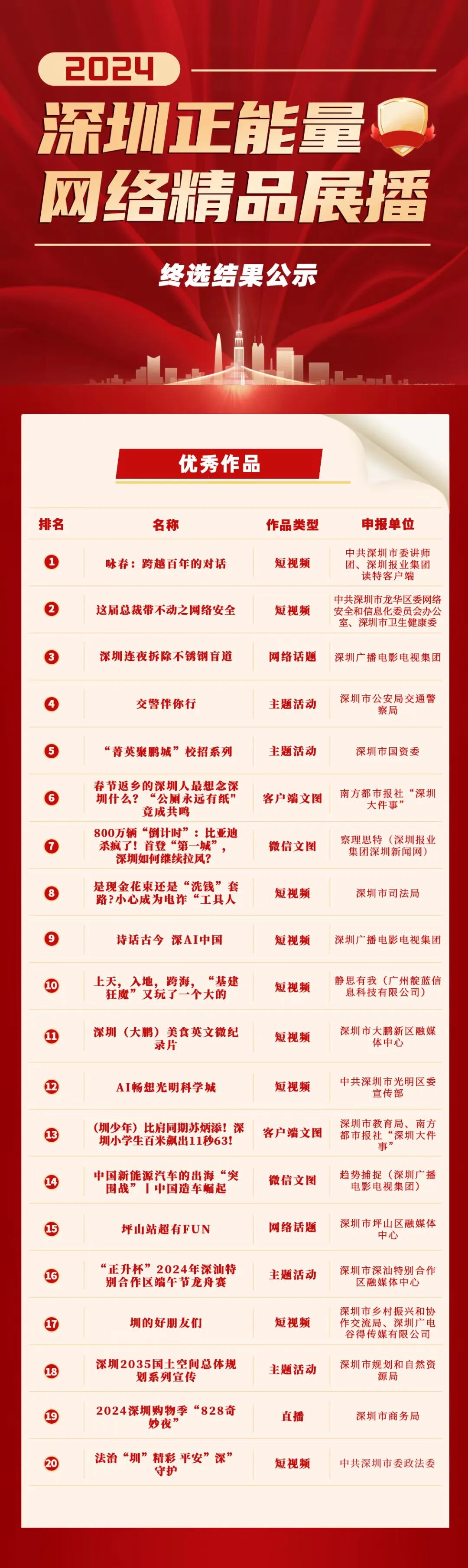 2024深圳正能量网络精品终选结果公示