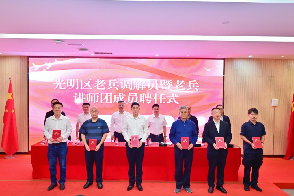 颁发聘书环节中,与会领导为受聘的老兵调解员和老兵讲师团讲师逐一颁发了聘书。鲜红的聘书承载着信任与重托,标志着光明区在发挥退役军人作用、创新服务管理模式方面迈出了坚实的一步。
