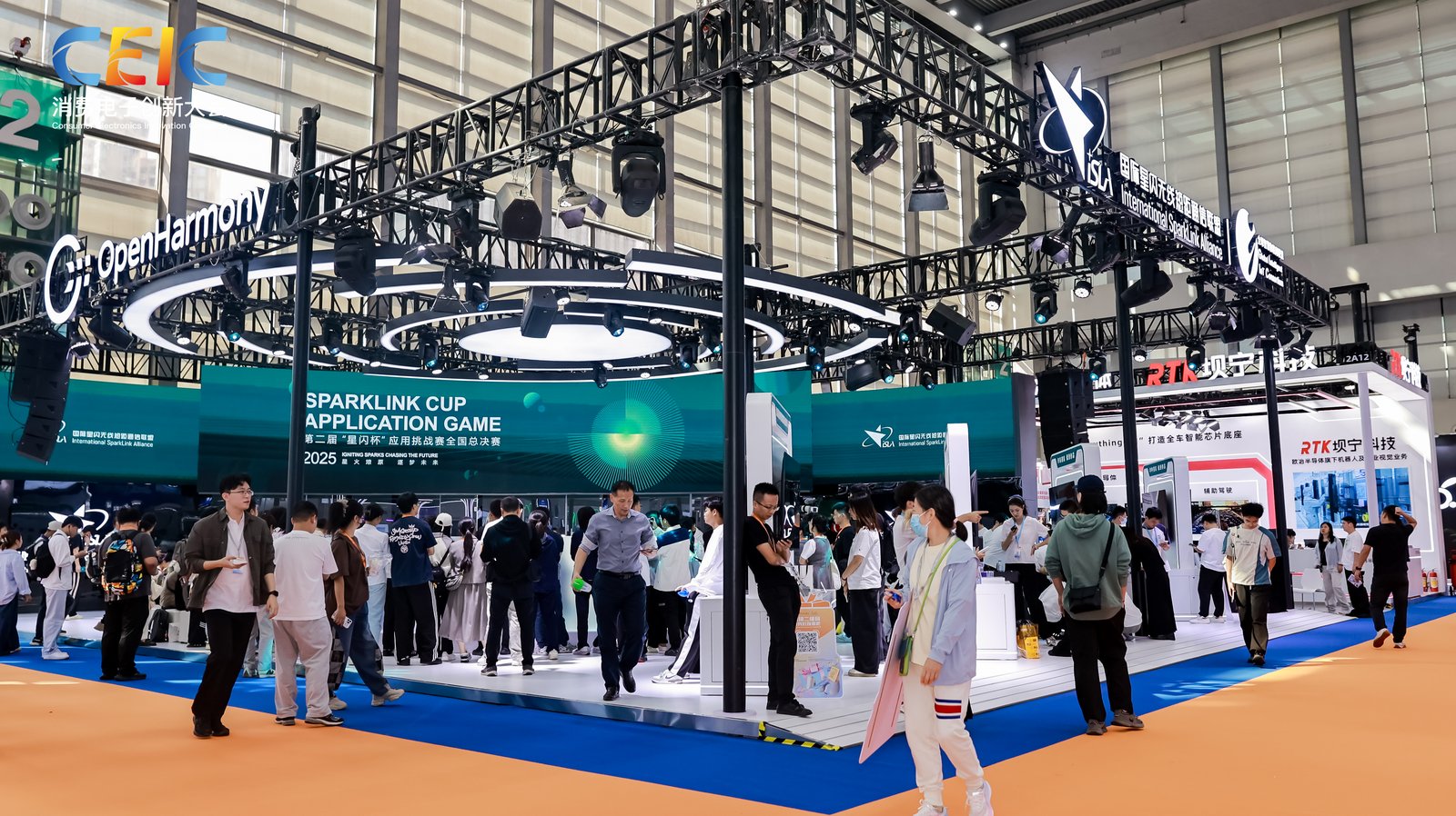 智能终端区,华为鸿蒙6全系首展,覆盖五类终端,设备无缝协同;荣耀折叠屏搭载多角度悬停、平行视界等功能,裸眼全息空间VR设备首次亮相,无需佩戴就能呈现立体影像。智能汽车区,华为乾崑、比亚迪等车企实车座舱演示车家互联;小鹏凭2250TOPS算力实现全程辅助驾驶,星闪车钥匙实现无感交互。智能家园区,中国移动建立的视联网大模型覆盖全域看护;华强北展区以“AI+硬件”全链条生态与“AI+场景”创新应用双核驱动,展示多项自研技术成果。