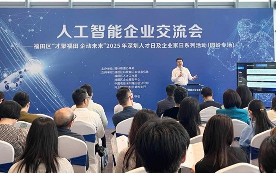 活动聚焦企业和人才发展需求,提供全方位政策指导。区科工局相关负责人对深圳市人工智能领域人才政策进行专业解读,为企业招才引智指明路径;区人才局则送上“政策大礼包”,对“福田英才荟”各项补贴及服务措施进行精准宣讲;区企服中心现场演示“福i企”平台功能,展现数字化服务效能;中国电信与兴业银行则分别围绕企业数智化赋能与全周期金融支持展开分享,为企业提供从技术到资金的全链条赋能支持。