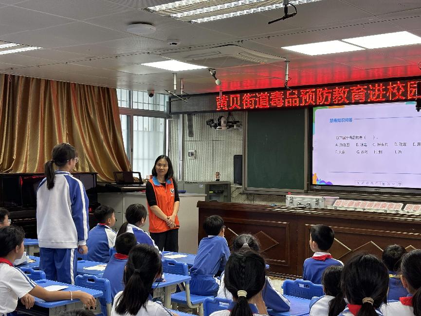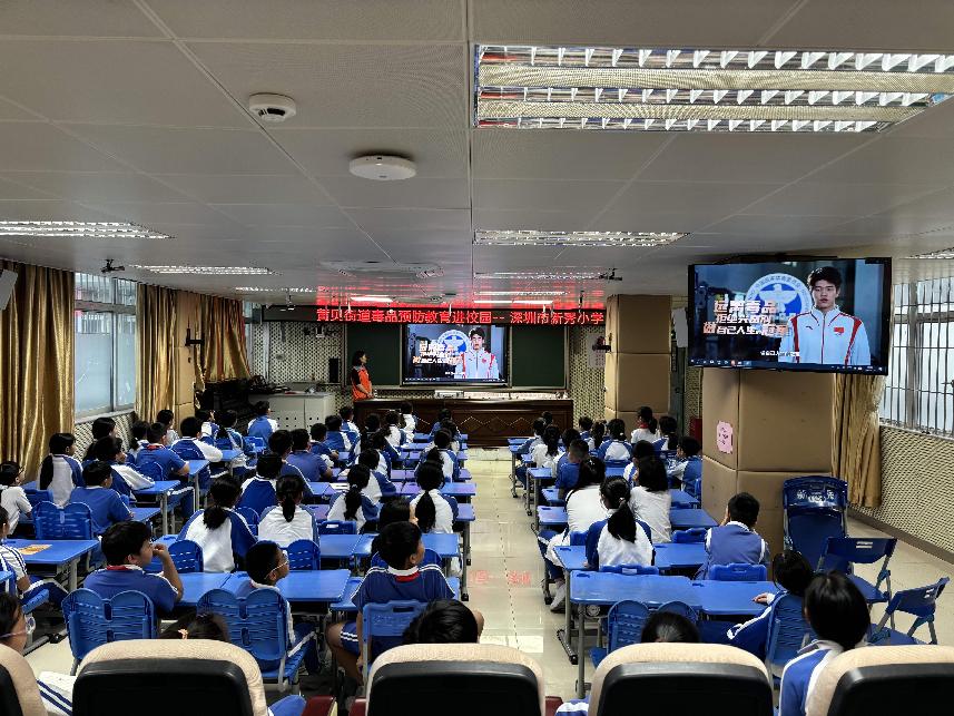为进一步加强校园禁毒宣传教育,助力青少年树立健康向上的价值观。11月4日下午,深圳市罗湖区黄贝街道平安法治办走进新秀小学,为五年级学生带来了一场主题鲜明、内容生动的“禁毒+反兴奋剂”主题讲座。本次活动将禁毒知识科普与体育精神引导相结合,通过互动式教学和案例警示,帮助孩子们建立识毒、防毒、拒毒意识,引导他们成为“身心健康、意志纯净”的人生赛场参与者。