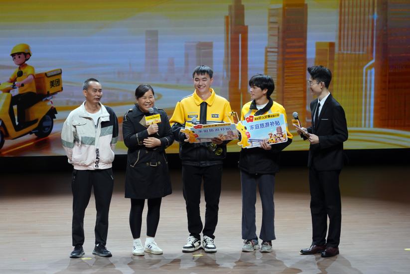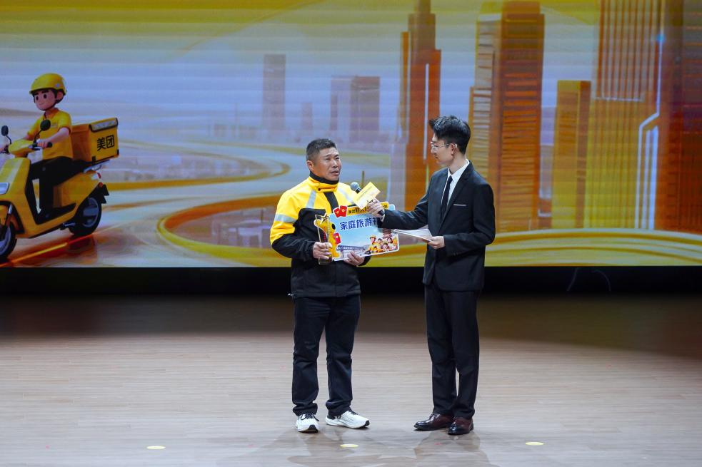 孟世祥等13位骑手获得了由美团颁发的家庭旅游补贴 (摄影:肖颢 李辉)
