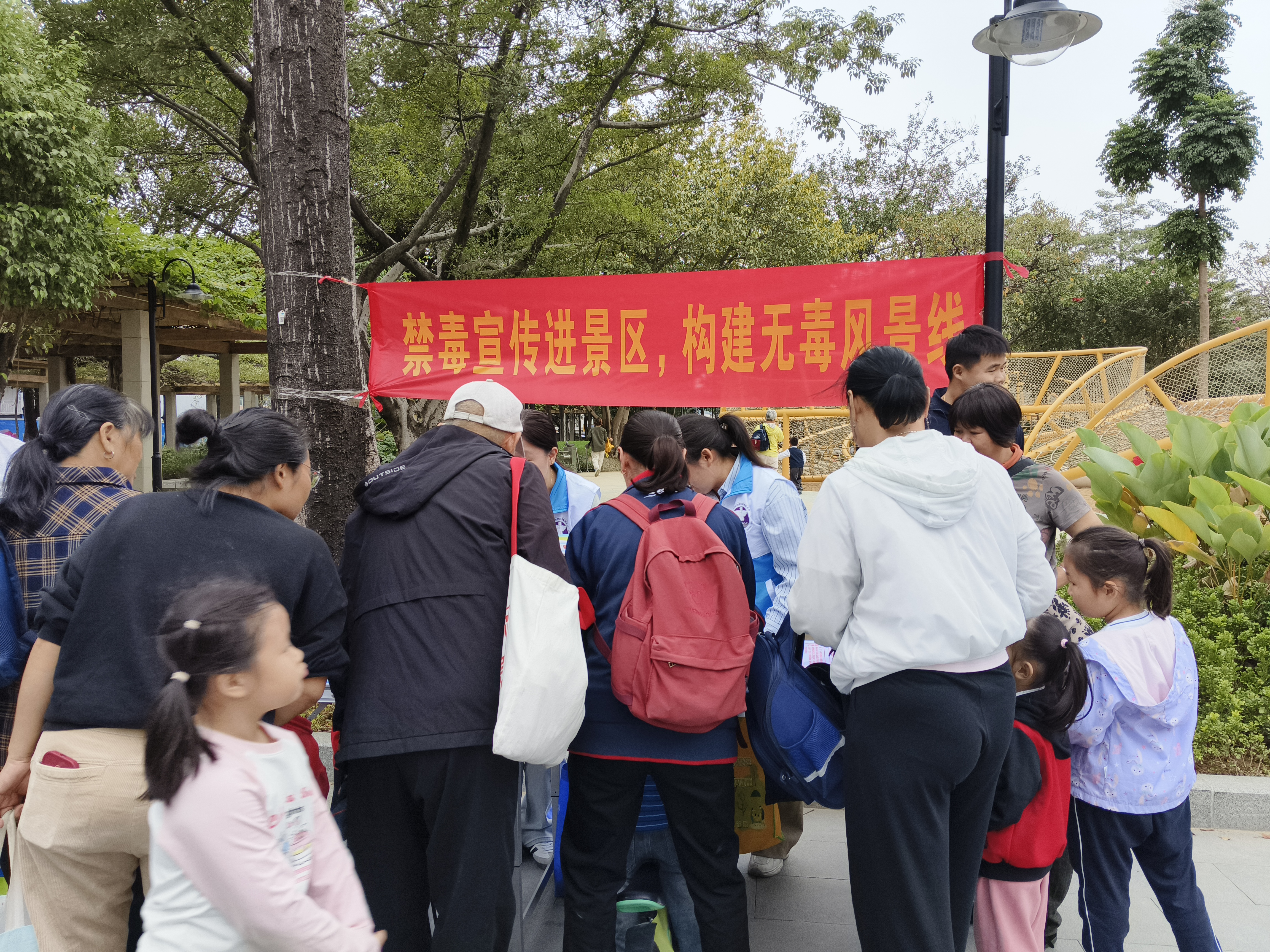 为增强社区居民对新型毒品的防范意识,同时普及健康运动理念,营造全民参与禁毒与反兴奋剂的良好氛围,近日,马田街道禁毒社工结合薯田埔社区龟山公园景区人流量大特点,开展了一场别开生面的宣传活动。