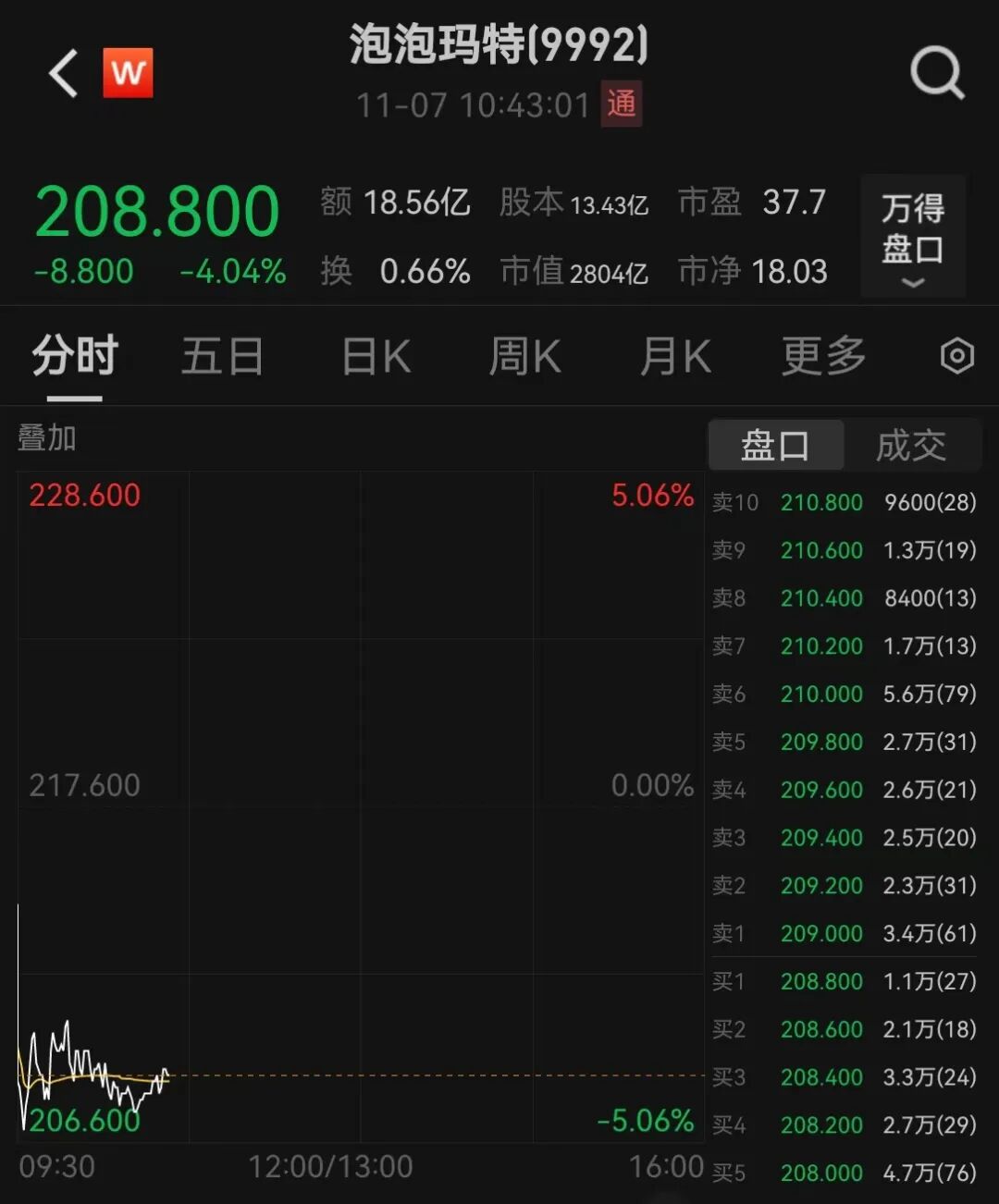 二级市场上,截至发稿,泡泡玛特跌超4%。