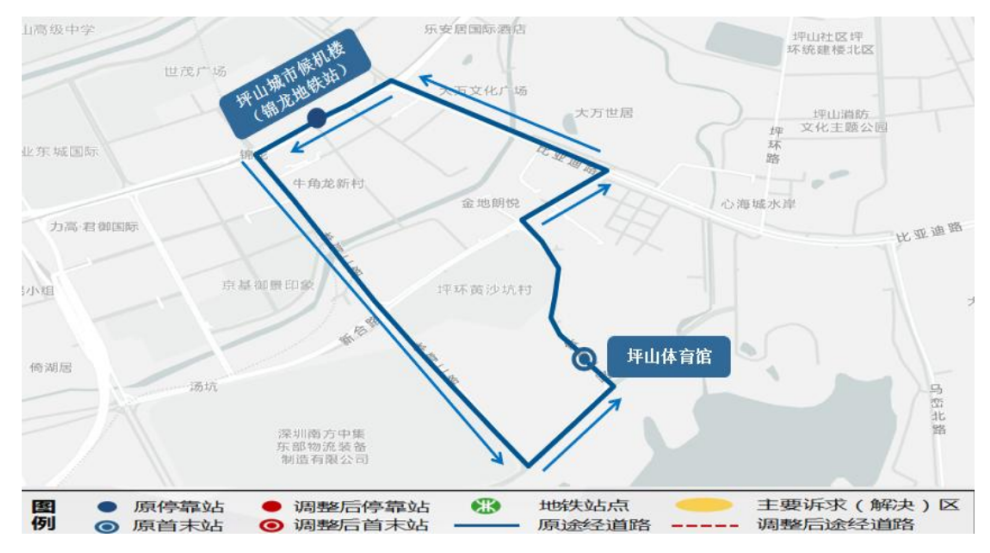 公交接驳线路J33:锦龙地铁站-坪山体育中心体育馆-锦龙地铁站环线