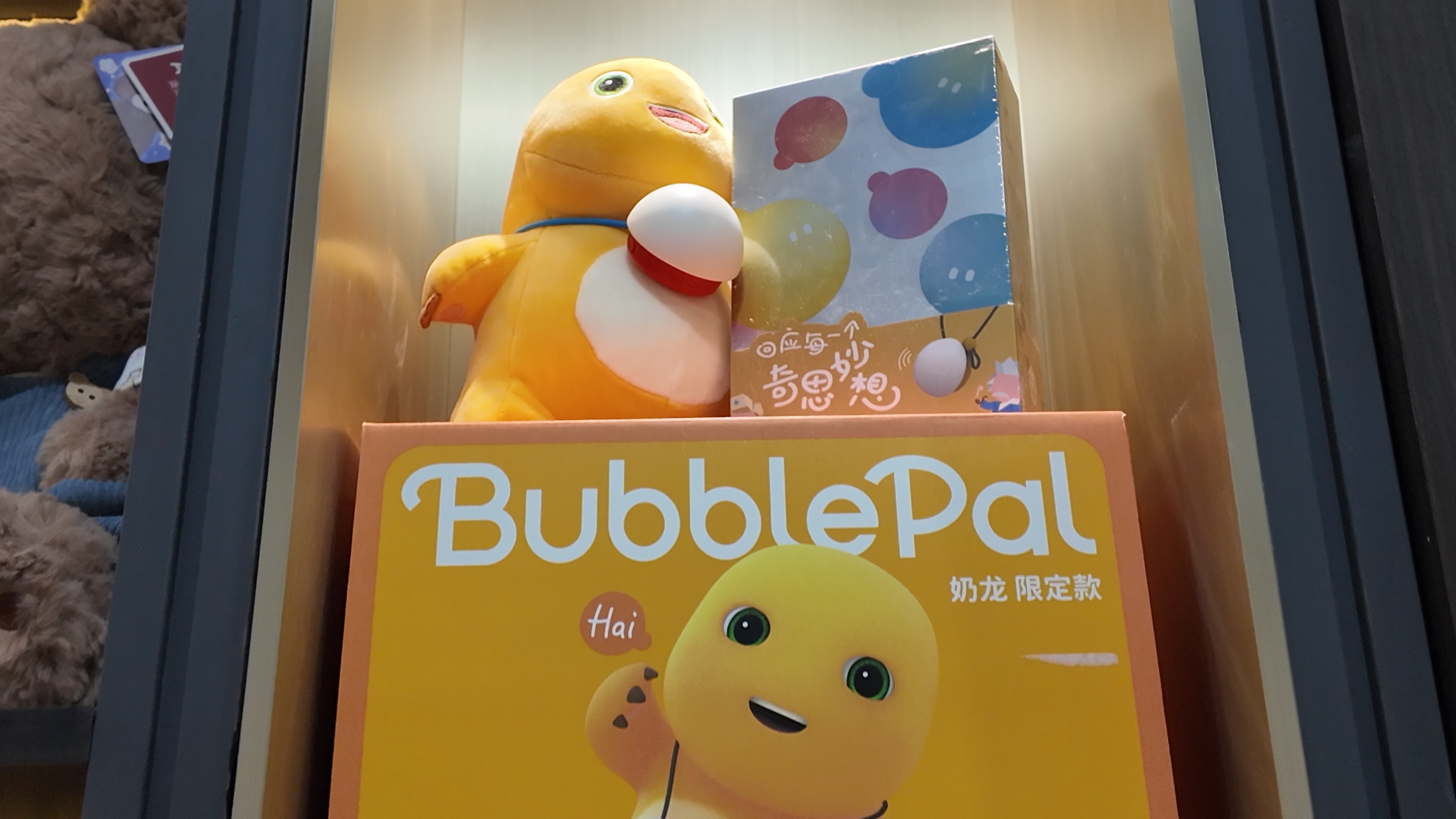 2024年,Haivivi迎来了第一款产品BubblePal。这是一个毛绒挂件,形状像一个白色的泡泡,可以佩戴在任何玩偶身上,点一点就能开启奇思妙想的对话。