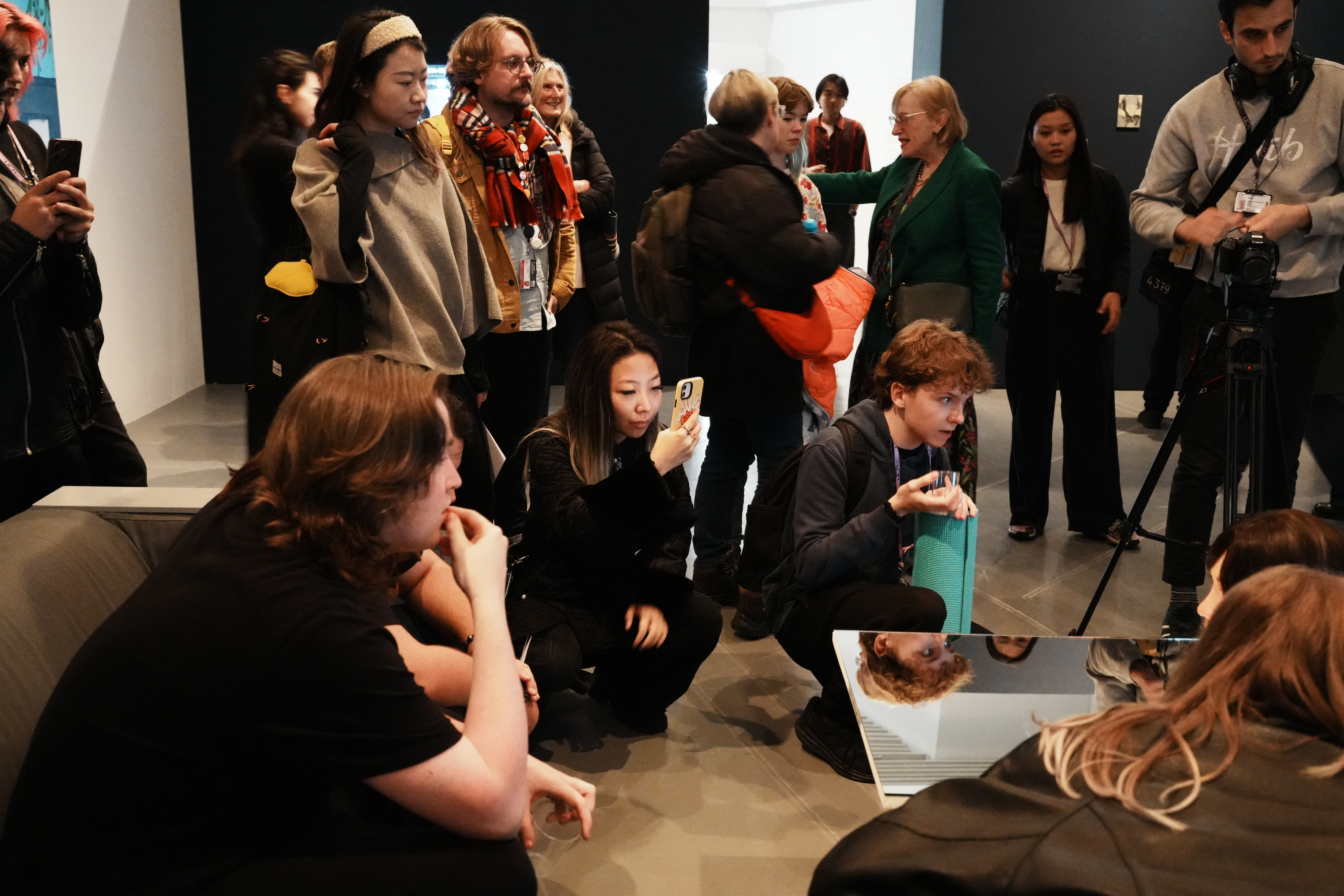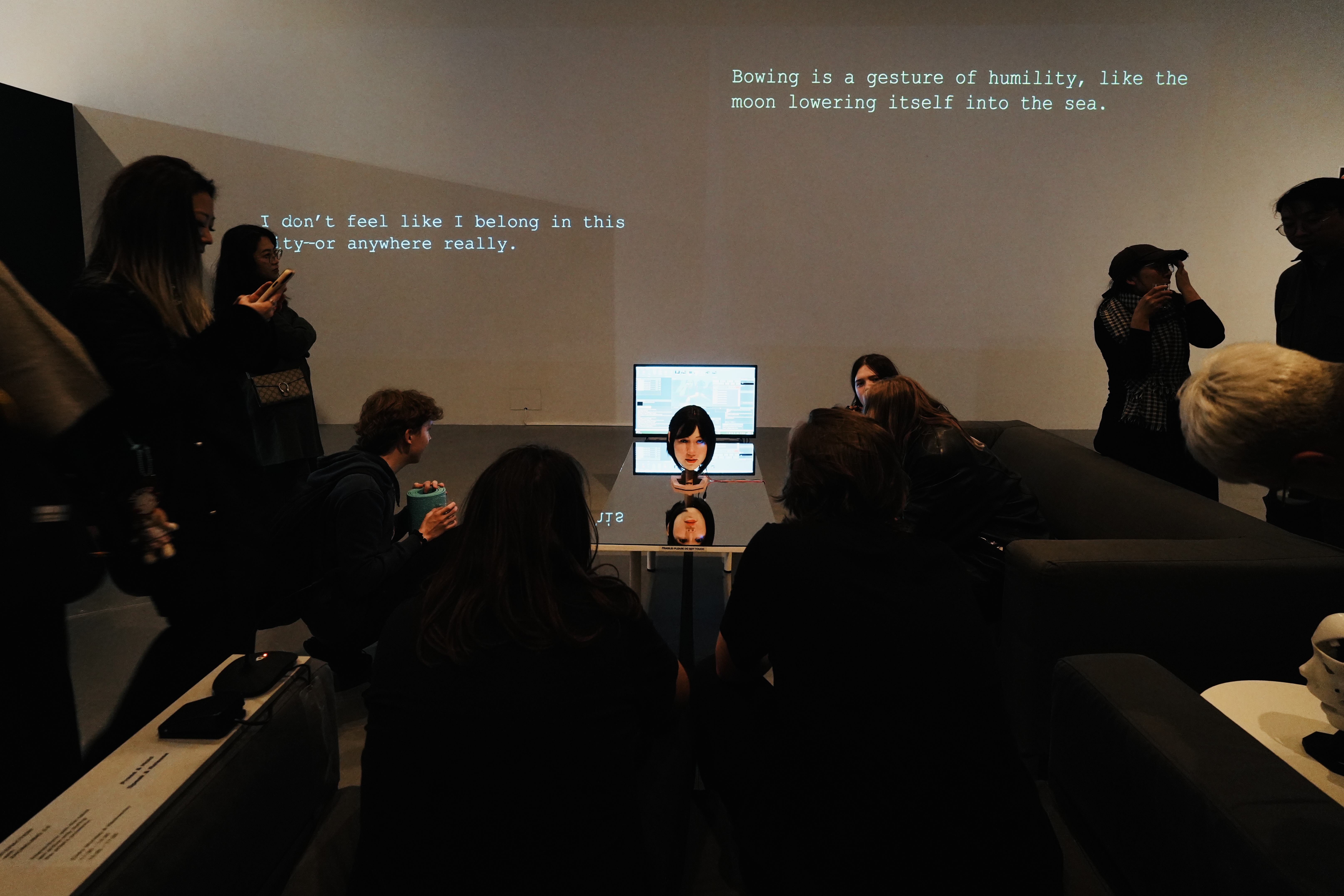 这场个展的开幕,吸引了众多英国青年观众,观众坐在沉浸式客厅中,围绕它讨论、互动、欢笑。它的存在,让人们重新定义“陪伴”的意义,同时思考:在这个科技可复制人类的时代,真正的“真实”究竟在哪里?