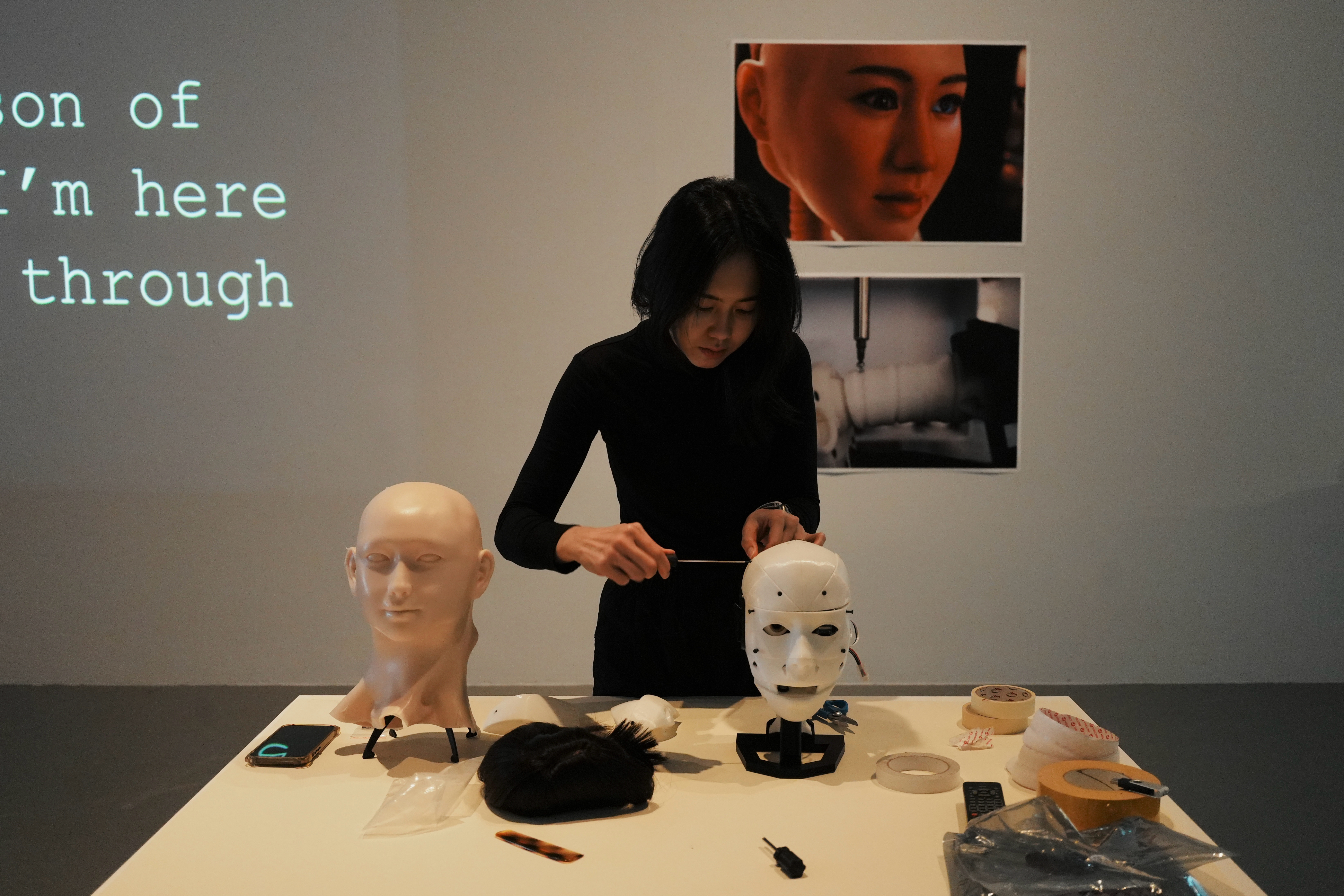2025年10月20日至11月21日,英国詹姆斯·霍基美术馆(James Hockey Gallery)迎来了一场极具未来感的个展——《不眠者,梦行于夜》(I Dream a Lot but I Never Sleep)。展览聚焦人工智能与人类情感的边界,展出了艺术家江中靖三年博士期间的研究与创作成果。来自中国广东深圳的年轻艺术家江中靖,以博士研究成果呈现出全球首个由亚洲女性艺术家自创的机器人“二重身”,成为跨界艺术与人工智能领域的新标志性人物。