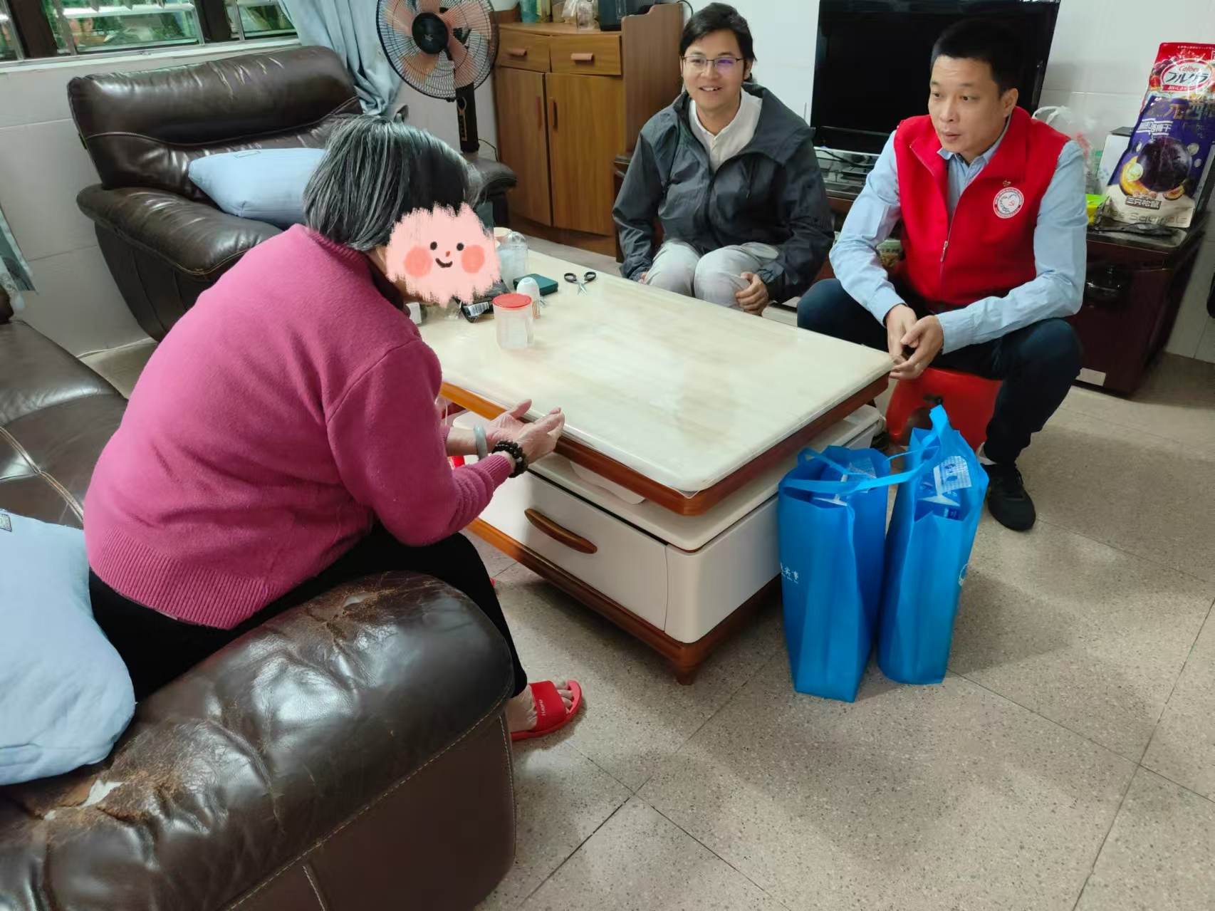 慰问组带着牵挂走进一个个家庭,深入了解他们的生活状况。在86岁的邓奶奶家中,慰问组了解到她身患严重精神障碍,术后腿脚不便且双耳失聪。年近花甲的儿子为了兼顾生计与照护,选择从事时间灵活的外卖工作,其艰辛令人动容。