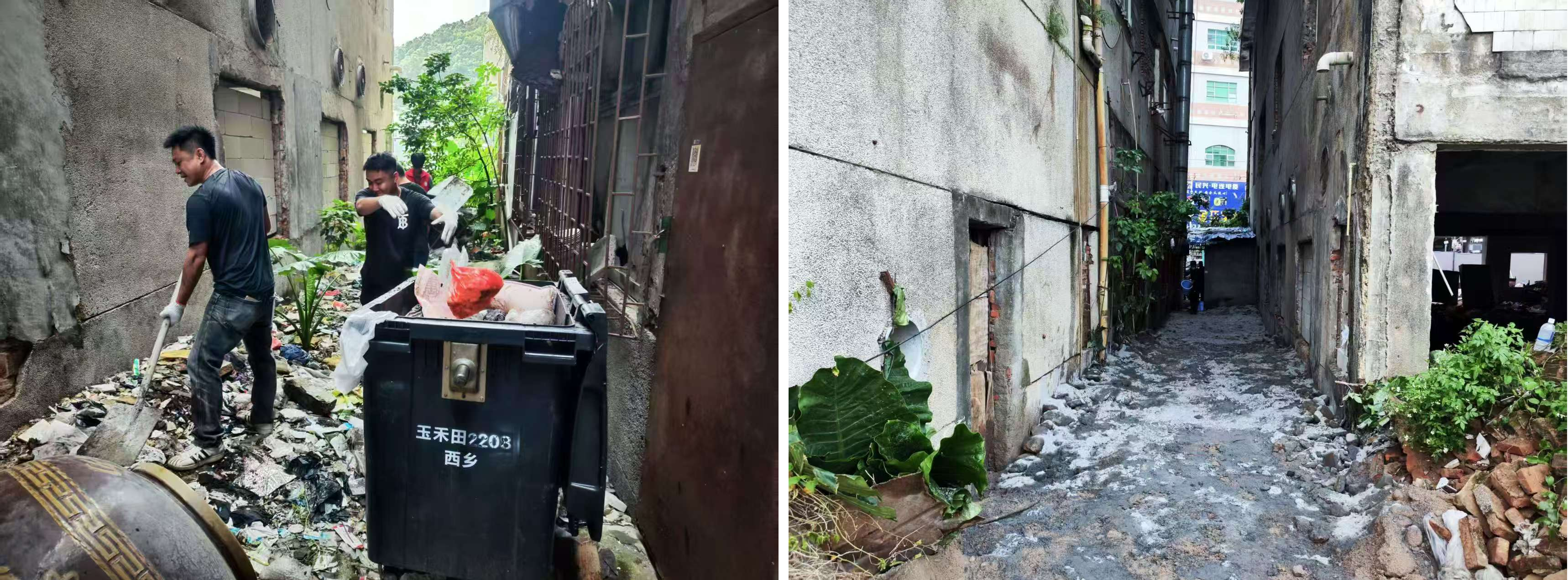 针对固戍一路废弃烂尾楼及周边的卫生顽疾,社区创新治理模式,发动股份公司、物业、环卫、网格及党员等多方力量,不仅彻底清除了积存垃圾,还对路面进行了硬底化处理,将昔日的“死角”转变为干净整洁的通道。
