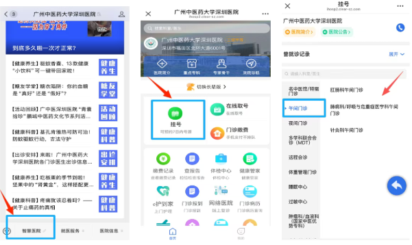 通过医院微信公众号“广州中医药大学深圳医院”“养生深圳”点击进入预约。每日17:00开放预约第七天号源。