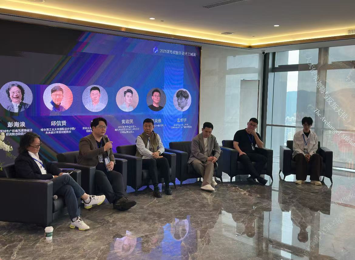 在首場圓桌對話中,多位專家學者圍繞“AI技術驅動下的設計範式變革”展開深度討論。深圳市廣田建築裝飾設計研究院總院院長彭海浪先生擔任主持,與哈爾濱工業大學(深圳)邱信賢教授、深圳大學車達博士、暗殼科技COO黃政民先生、澳門大學趙炎修博士、香港科技大學(廣州)孟恆宇先生等嘉賓,共同探討AI對設計思維、教育及產業的影響。嘉賓一致認為,AI時代的設計需在工具理性與人文價值間尋求平衡,以“為人而設計”為內核,推動技術、教育與產業的融合共生。