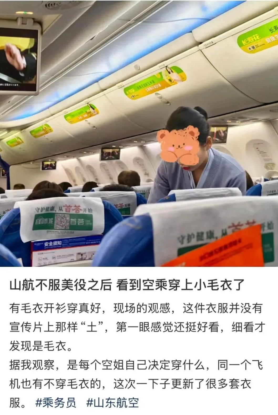 消息一出,引发网友热议。有人点赞山航“不服美役”,也有网友表示“羊毛衫+裤装”穿上看起来很“土”“月嫂风”。