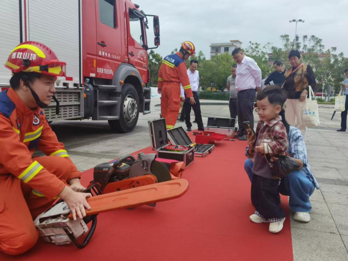 “消防意识要从小培养,今天带孩子来体验,就是希望他从小树立安全意识。”在宣传展板区和消防器材体验区,不少家长带着孩子驻足,消防员耐心演示消防器材的使用方法。