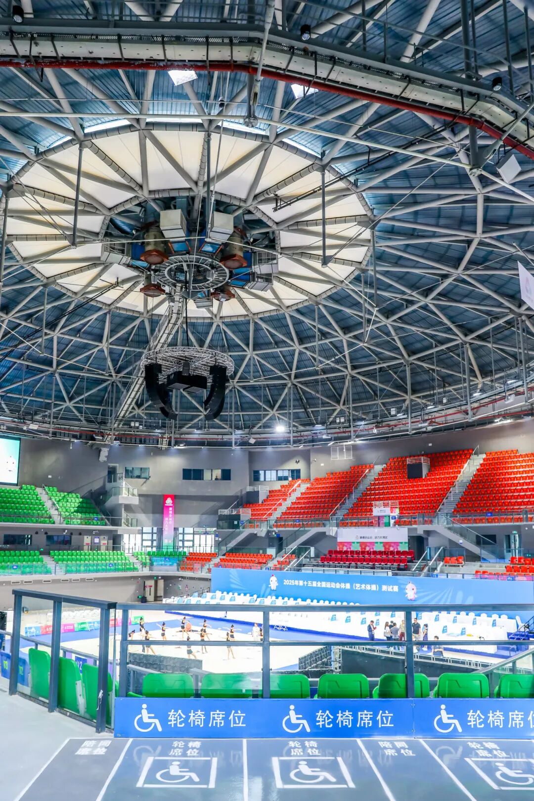 作为十五运艺术体操赛馆,深圳坪山体育中心“飞碟馆”早已换上全运新装,深蓝穹顶如露珠嵌于基座,钢骨架交织,在阳光下折射未来感。2052平方米的主馆与880平方米的副馆功能分明,所有竞赛器材均已调试到位,为运动员提供专业竞技空间。
