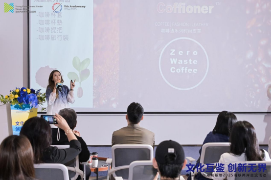 台湾设计师、鑫锐泽品皮具有限公司总经理洪梦徽以《再生环保产品规划》为主题讲述了其通过整合大陆优势供应链,设计开发系列环保再生永续皮具产品,为多个品牌提供相关设计与生产服务的经历。洪梦徽现场介绍了咖啡渣、苹果皮、牛纤维皮三类再生材料及对应产品,这些材料既环保又能降低成本,能够创造可持续发展的价值。