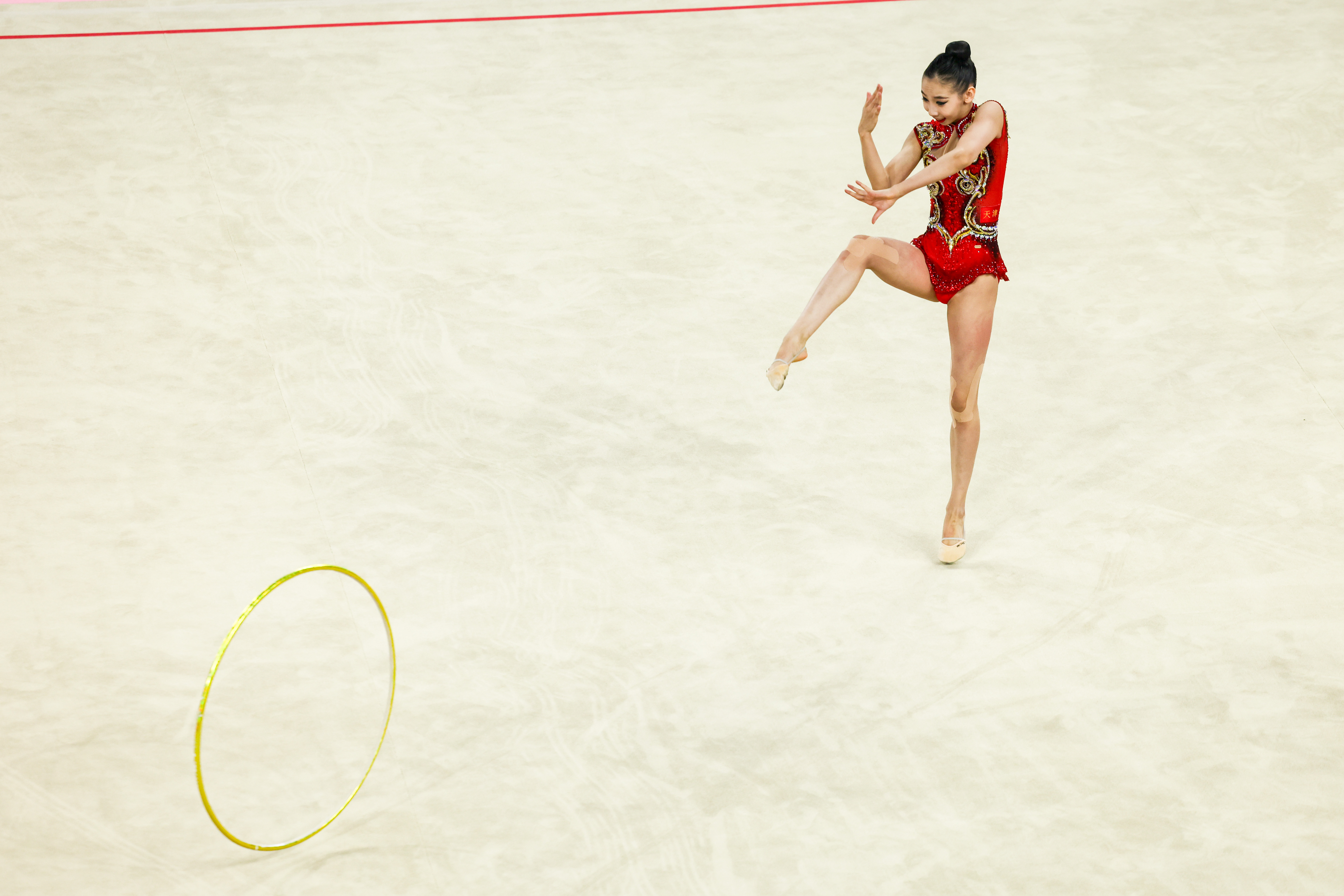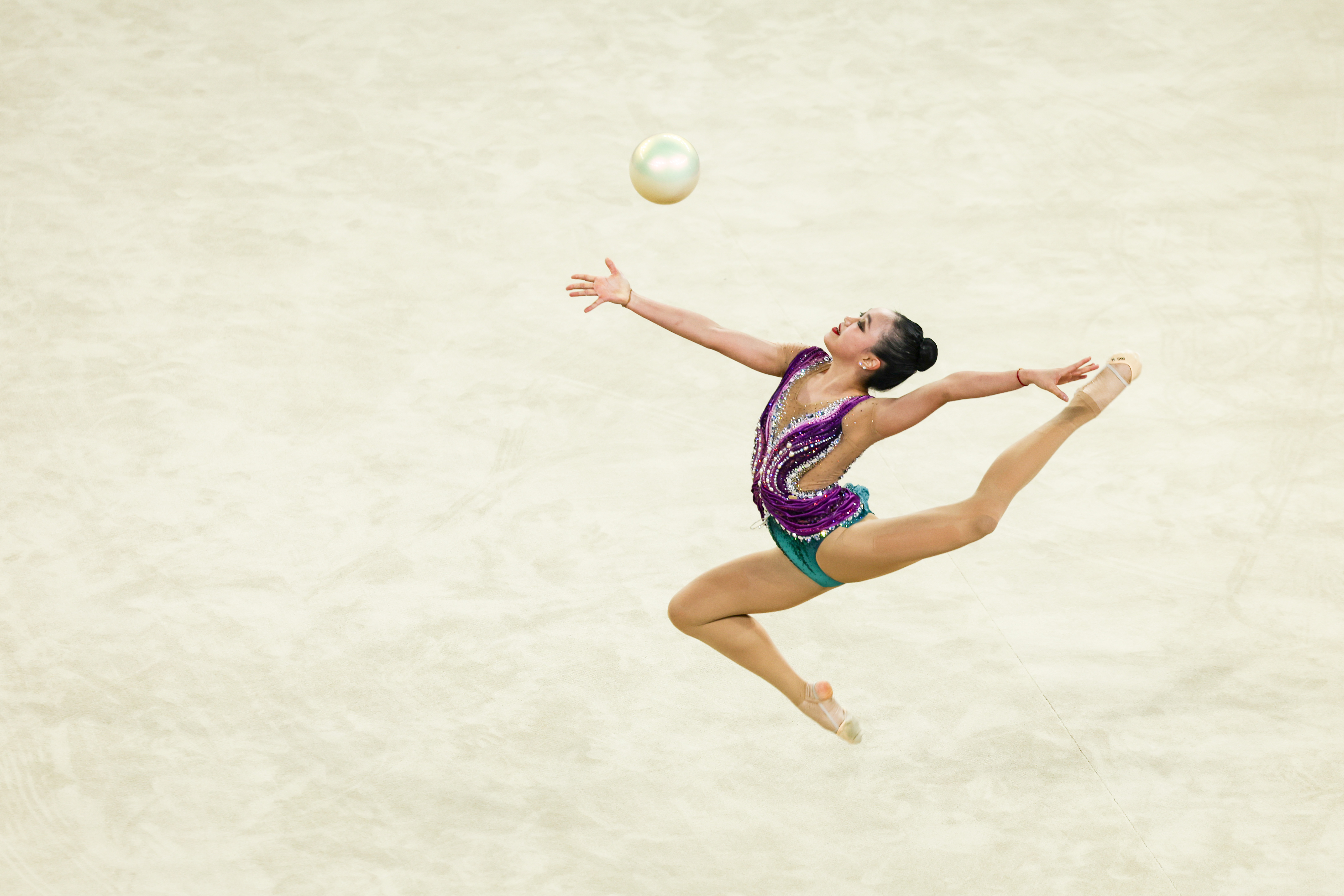 地毯上的芭蕾,在“飞碟”上演。11月8日上午,第十五届全国运动会艺术体操比赛在深圳坪山体育中心体育馆拉开序幕。来自全国各地的15支顶尖代表队将在3天时间里角逐个人全能、集体全能两枚金牌。