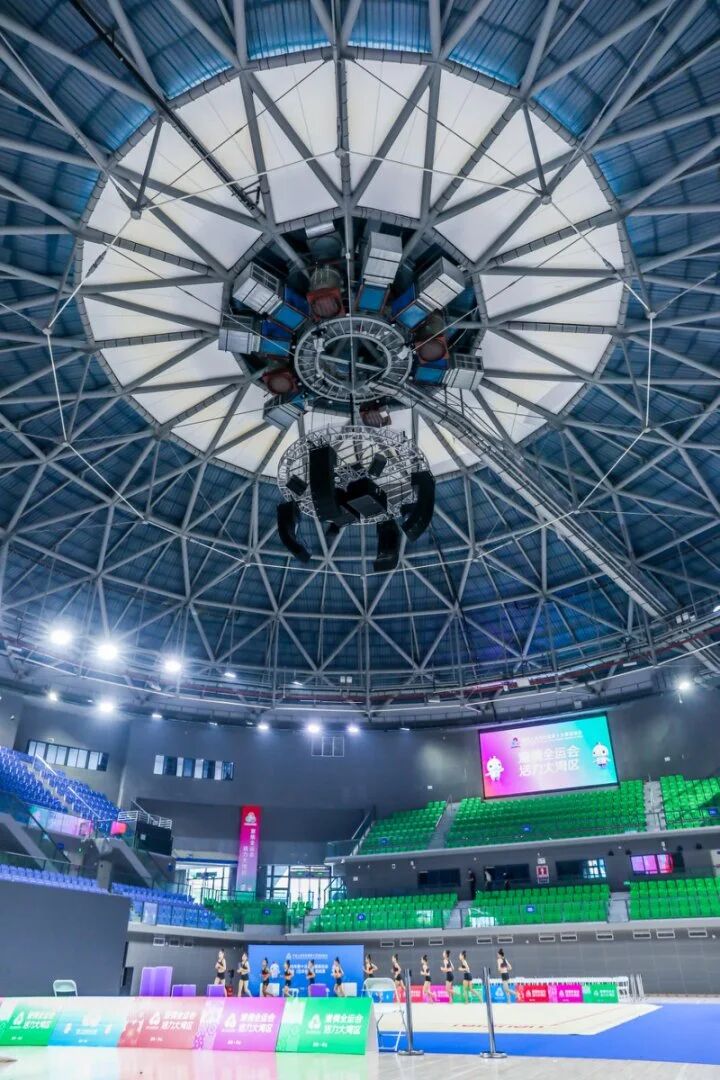 坪山体育中心体育馆由于扁形的轮廓加上极具科技感的外观,被深圳市民亲切地称为“飞碟馆”。在十五运会开赛前,这里已经换上了全运会“限定皮肤”,迎接全国各地运动队的到来。