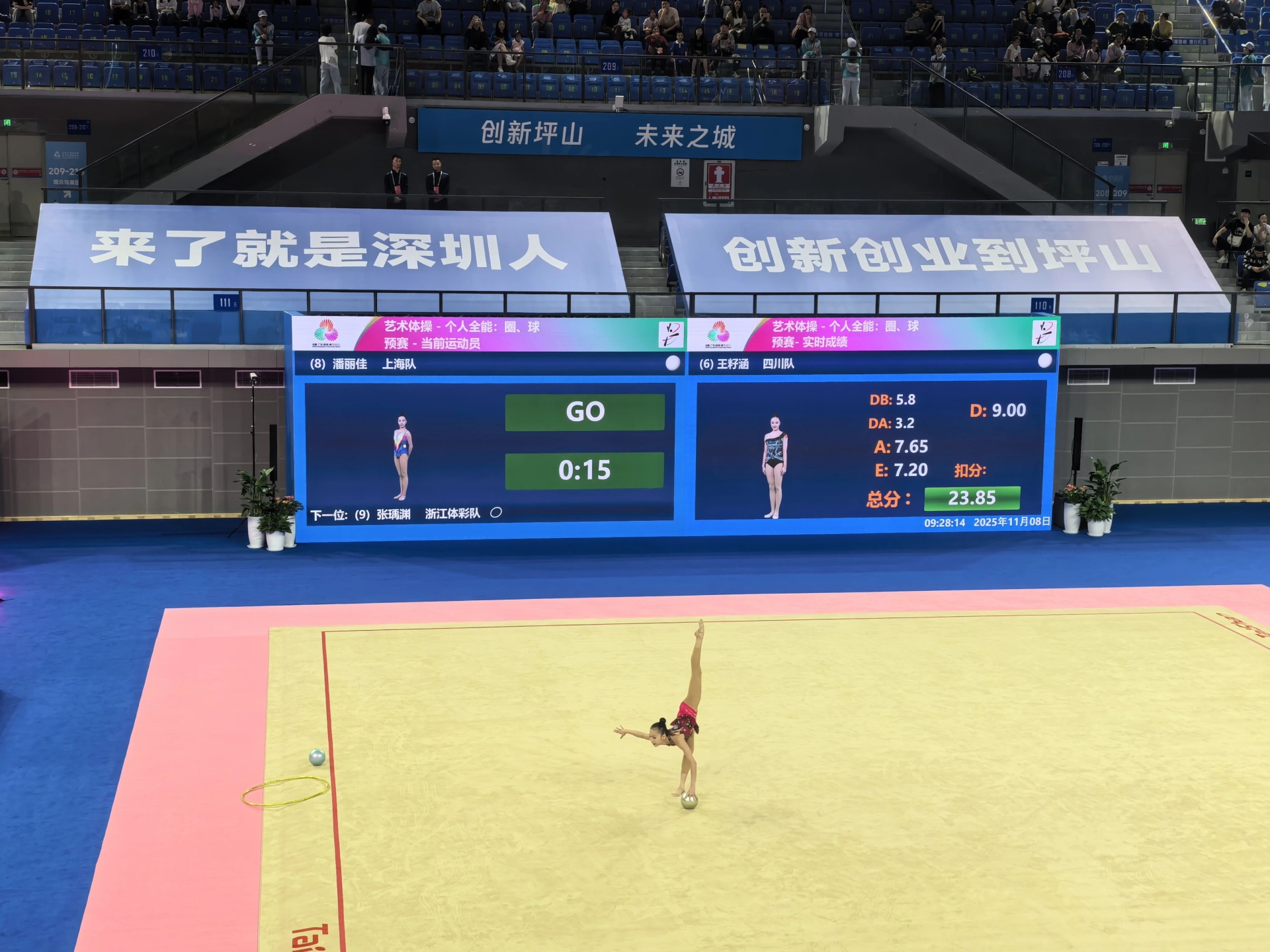 11月8日,第十五屆全國運動會(以下簡稱“十五運會”)體操(藝術體操)項目在深圳坪山體育中心體育館正式開賽,來自全國各省市的參賽隊伍集結賽場,為這場國際級賽事拉開精彩序幕。