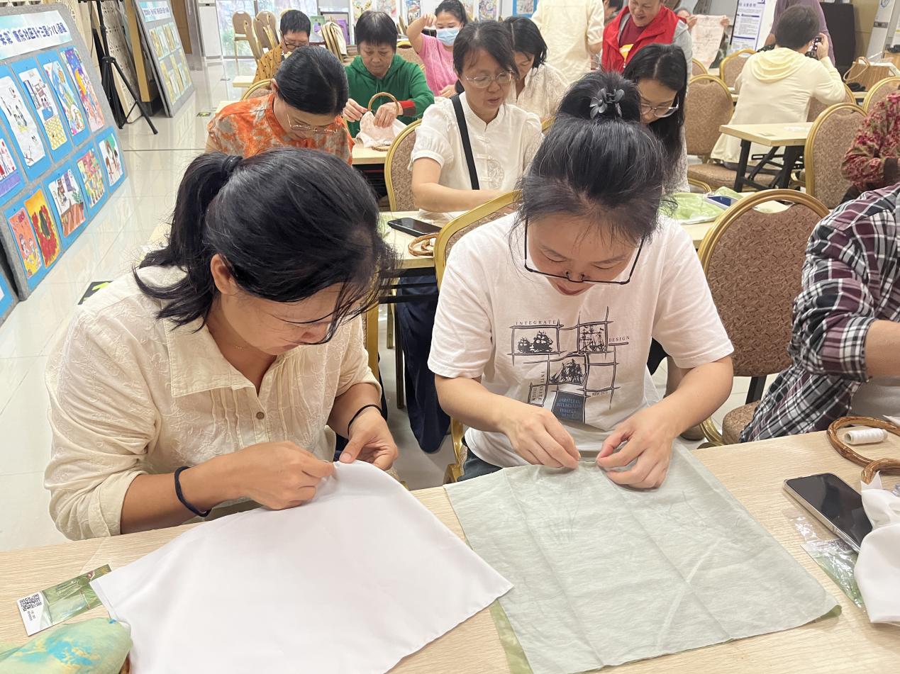 活动现场,中国人寿志愿者老师通过PPT讲解与现场实操演示相结合的方式,详细拆解竹节包制作流程,从布料裁剪、基础针法运用到配件安装、装饰搭配,每一个步骤都耐心指导,确保每位参与者都能快速掌握技巧。居民迅速投入创作,专注穿针引线、细致搭配饰品,时而交流缝制心得,时而分享创意巧思,原本互不熟悉的邻居在互动中渐渐熟络,活动室内欢声笑语不断,暖意融融。