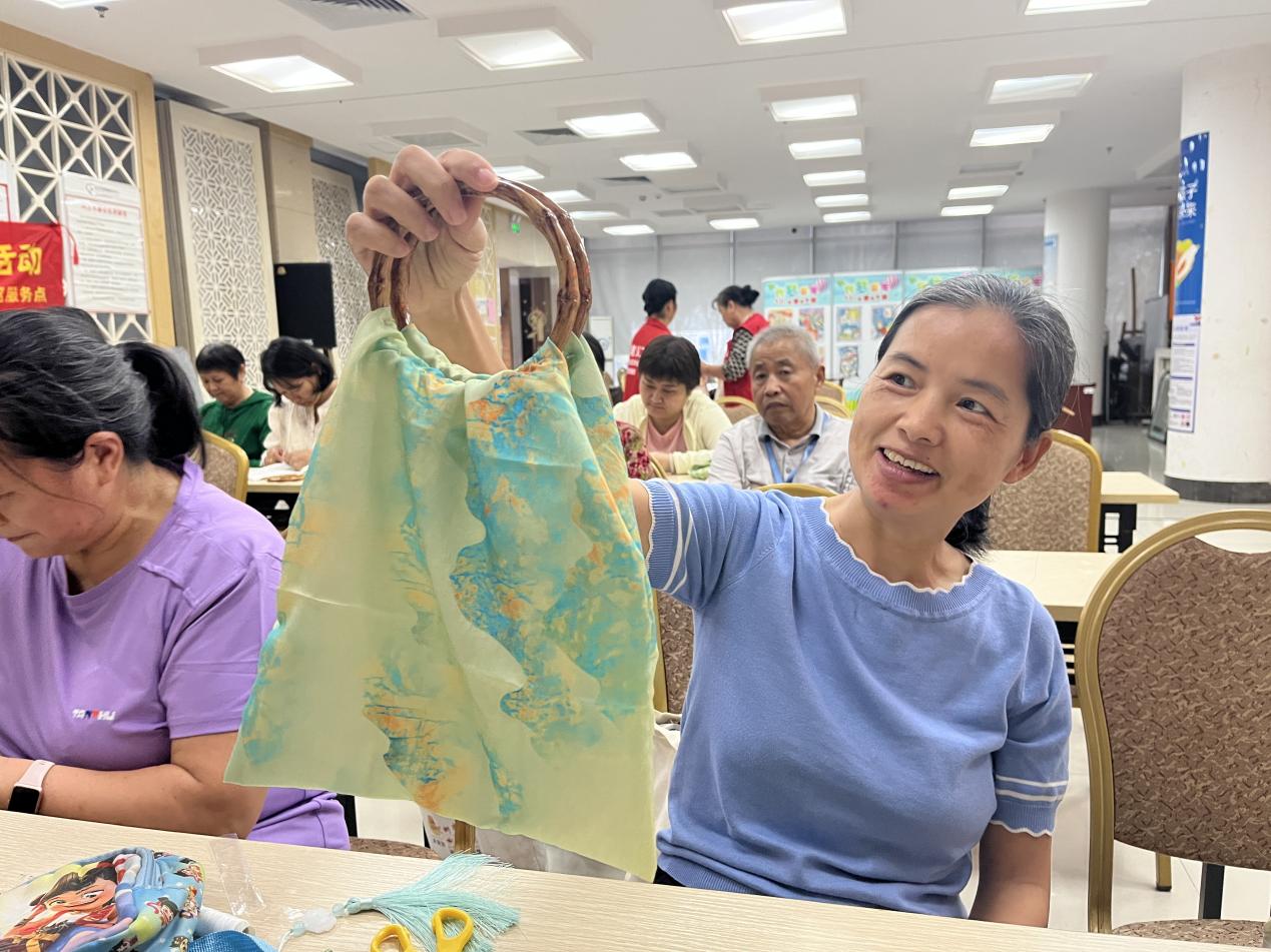 “平时忙着家务带孩子,难得有机会静下心做手工,特别治愈。”一位年轻妈妈笑着说道。年长居民也纷纷点赞,认为活动既解压有趣,又能学到新技能,十分有意义。经过近两小时的精心制作,一个个别致美观、独具个性的竹节包相继完成,居民们手捧作品互相欣赏、拍照留念,脸上洋溢着满满的成就感。“这是我亲手做的包包,实用又有纪念意义,背出去肯定特别骄傲!”王阿姨爱不释手地展示着自己的成果。