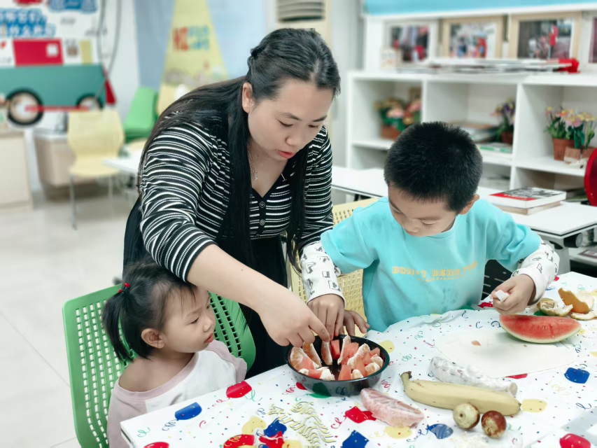 本次“幸福‘食’光机”亲子主题活动,把厨房打造成亲子共学的“实践课堂”,既帮孩子练就生活技能,更给家长搭建了高质量陪伴的桥梁。制作现场,家长们手把手教孩子使用儿童安全刀具,陪孩子讨论食材搭配。从“颜值与美味并存”的酸奶盆栽,到“快手又营养”的海苔吐司卷,再到“脑洞大开”的亲子水果拼盘,每一道美食的制作都是一次成长历练。