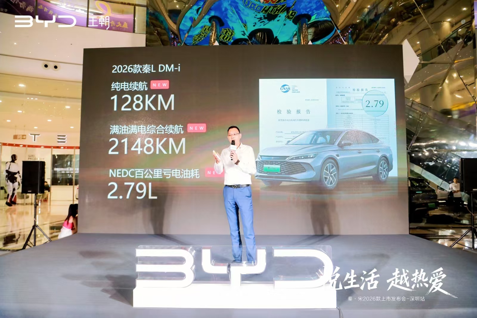 11月7日,“悦生活 越热爱”比亚迪2026款秦L DM-i、2026款宋Pro DM-i和宋L DM-i新车发布会(深圳站)举行。活动现场,比亚迪产品讲师详细介绍了三款车型的性能水平和智能座舱等信息,现场新车的亮相吸引了一众车迷朋友前来围观。