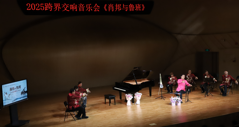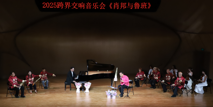 当浪漫肖邦邂逅“匠祖”鲁班,当西方交响乐碰撞中国非遗锯琴,会迸发出怎样的火花?11月8日晚 7 点半,深圳龙岗文化中心音乐厅座无虚席,一场名为“肖邦与鲁班跨界交响”的文化盛宴在此上演。这场集“趣演艺、趣场景、趣数创”于一体的视听狂欢,不仅解锁了非遗锯琴的全新打开方式,更让现场观众沉浸式感受了中西文化交融的独特魅力,其中《马刀舞曲》的激情演绎,更是将全场气氛推向高潮,点燃了每一位观众的热情。